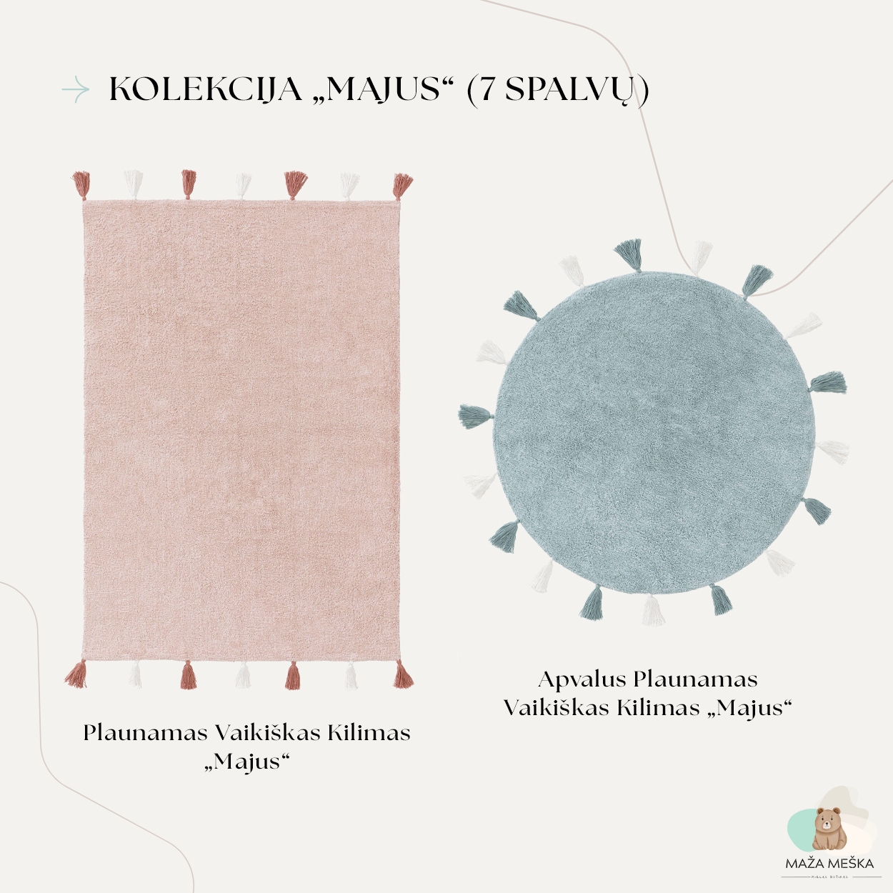 | Dydis | 120×170 cm, 80×120 cm, 150×220 cm, 60×100 cm |