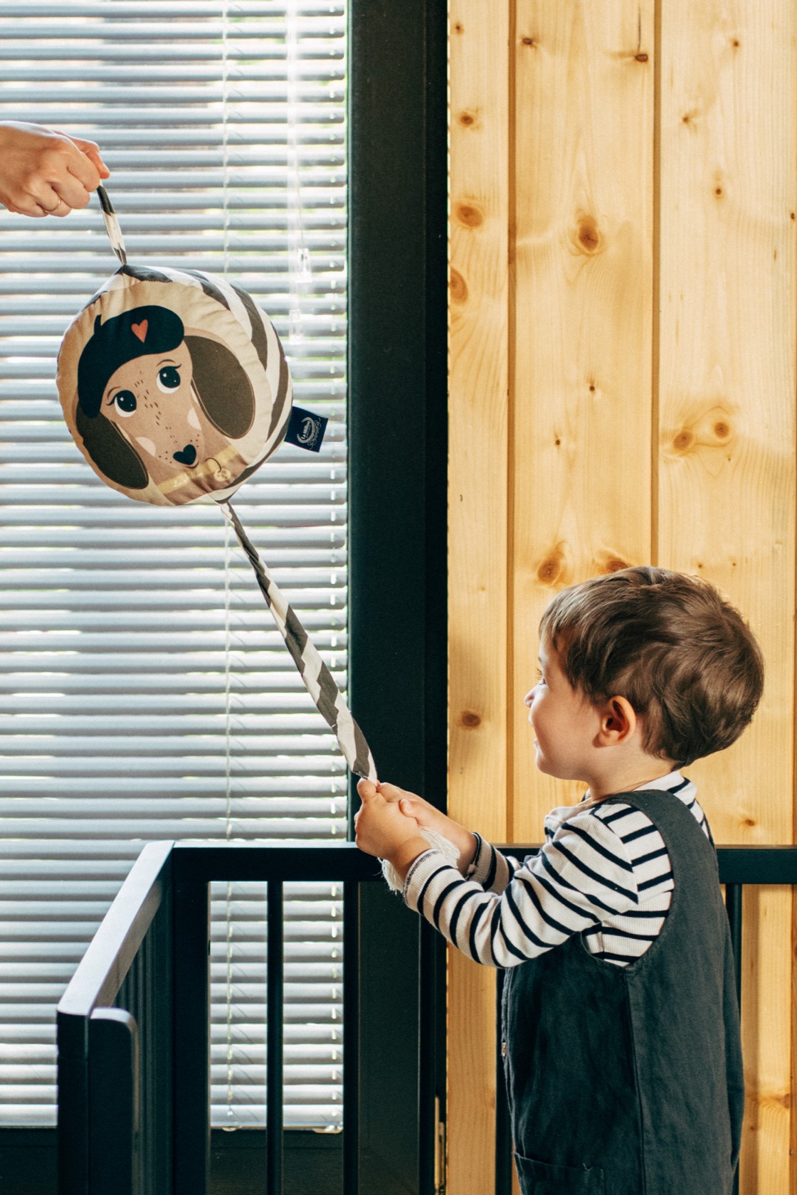 Žaislas pagamintas iš aukščiausios kokybės medvilnės, o užpildas – silikoniniai kamuoliukai, kurie yra visiškai saugūs vaikui. Minkštas ir malonus liesti, jis puikiai tinka vaikui laikyti, glostyti ar apkabinti. Specialios virvelės leidžia žaislą pakabinti bet kur – tiek prie kūdikio lovelės, tiek prie vežimėlio, todėl muzika visada gali būti šalia, suteikiant komfortą ir ramybę.