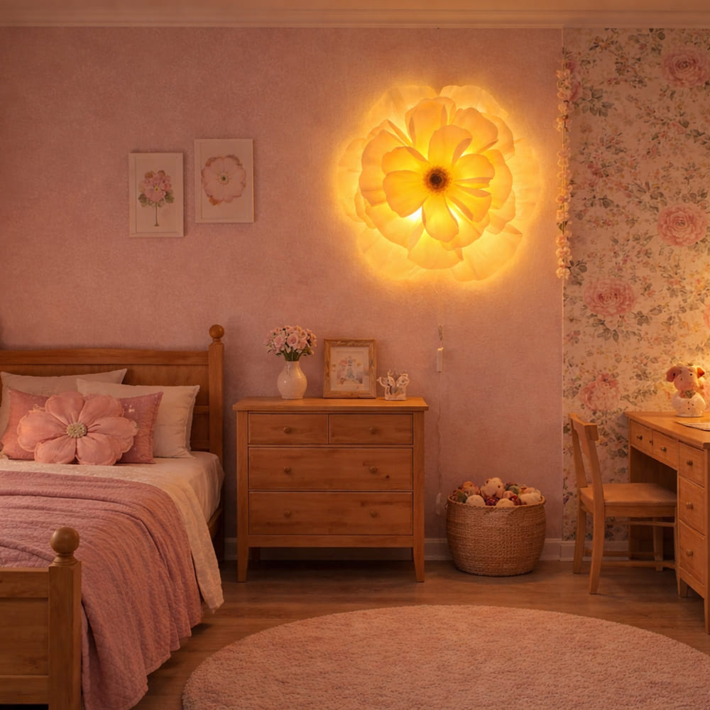Švelnus, minkštas šviesos spindulys apgaubia kambarį ramybe ir jaukumu.