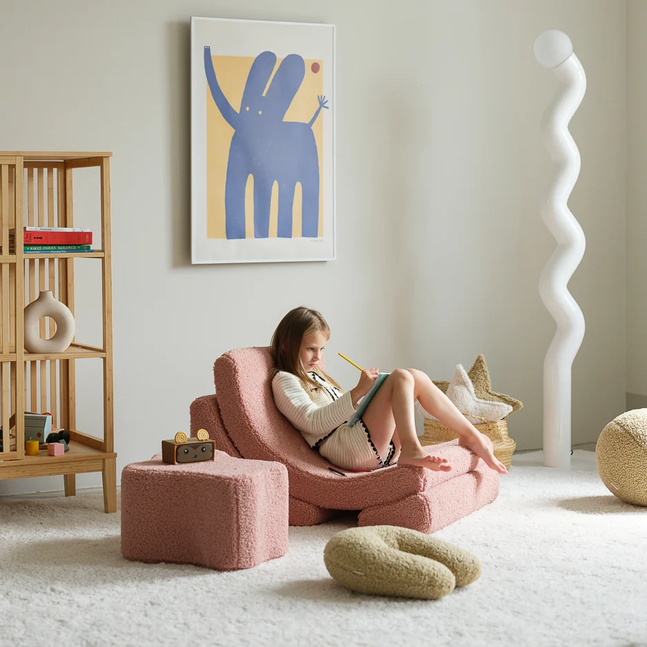 Svajingas, švelnus ir be galo jaukus – Rausvas Mėnulio krėslas taps neatsiejama jūsų mažylio kasdienybės dalimi. Sukurtas 5–9 metų vaikams, šis krėslas kviečia į atsipalaidavimo, žaidimų ir fantazijos pasaulį, kuriame galima ne tik skaityti ar ilsėtis, bet ir statyti savo jaukų kampelį iš trijų atskirų dalių.