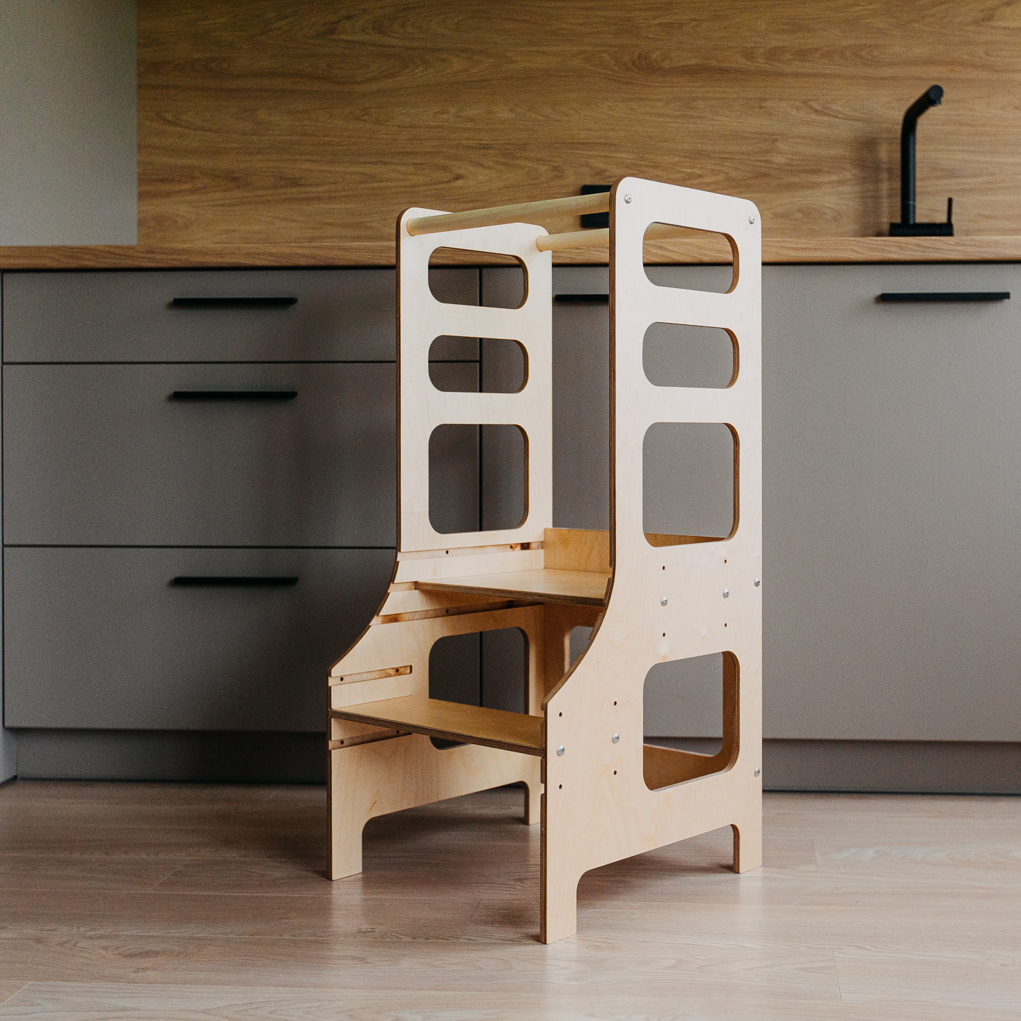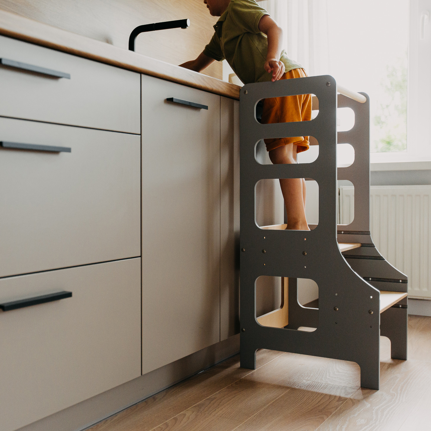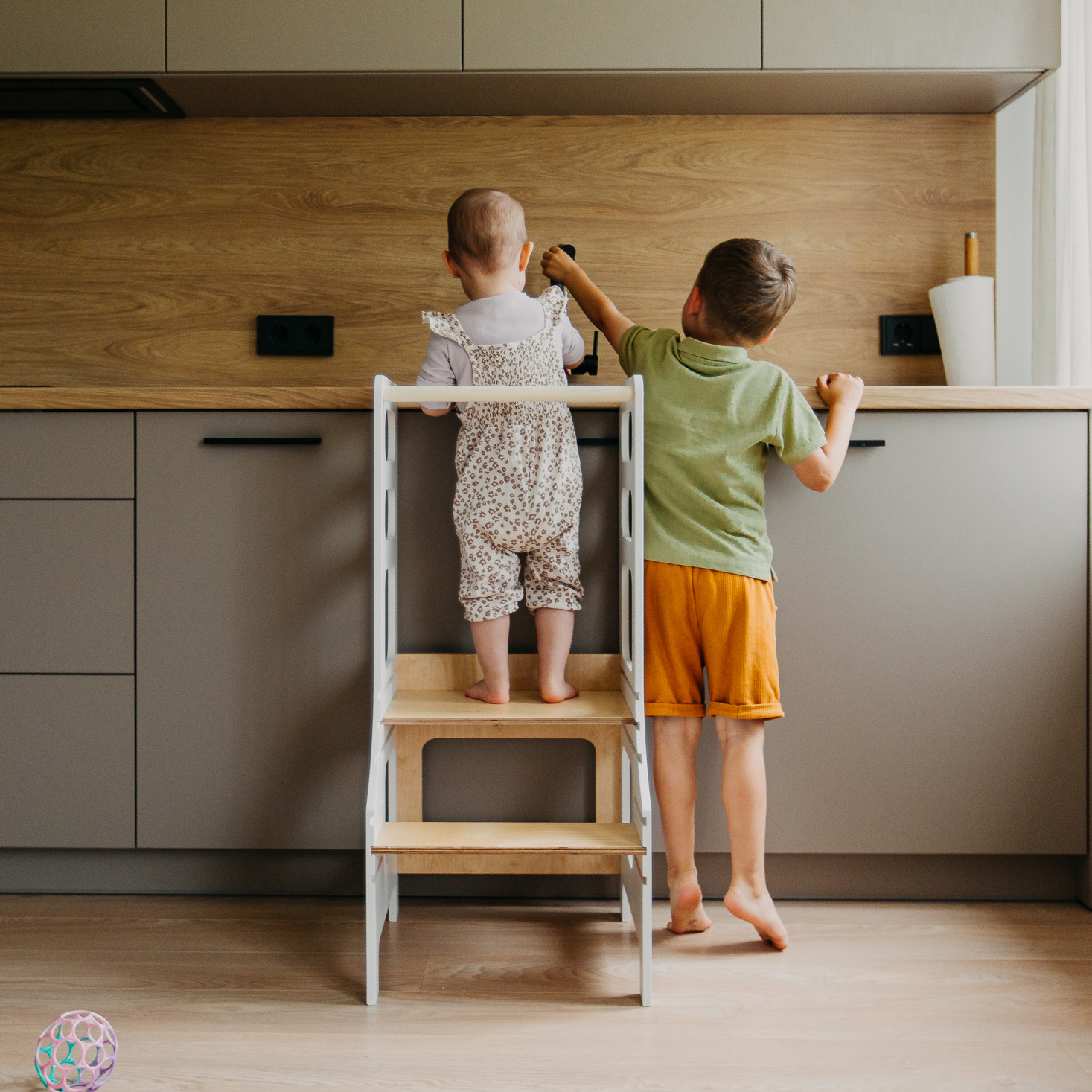 Montessori bokštelis skatina ir ugdo mažylių savarankiškumą.