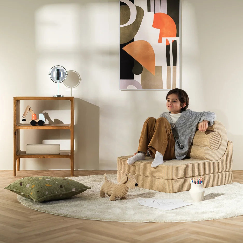Susipažinkite su Vaikiška Rudojo Cukraus Spalvos Kėdė-Gultas FLIPSTER, patobulinta klasikinės kėdės-gulto versija. Ji suteikia dar daugiau komforto, funkcionalumo ir erdvės tiek vaikams, tiek suaugusiems. Dabar ne tik jūsų mažyliai gali mėgautis jaukia vieta poilsiui, bet ir tėvai ar vyresni vaikai gali patogiai atsisėsti, pailsėti ar net nusnausti.