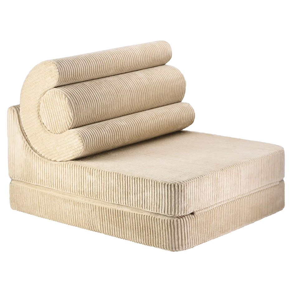 Tvarumas ir saugumas – prioritetas. Išorė pagaminta iš OEKO-TEX® ir GRS® sertifikuoto plačiaraiščio korduro. Jo gamyboje panaudoti perdirbti PET buteliai, todėl kėdė-gultas ne tik jauki ir maloni liesti, bet ir draugiška aplinkai. Vidinis užpildas – ISO sertifikuotos poliuretano putos. Jos suteikia optimalią atramą ir ilgalaikį patvarumą.