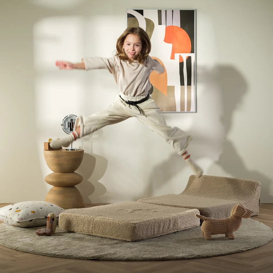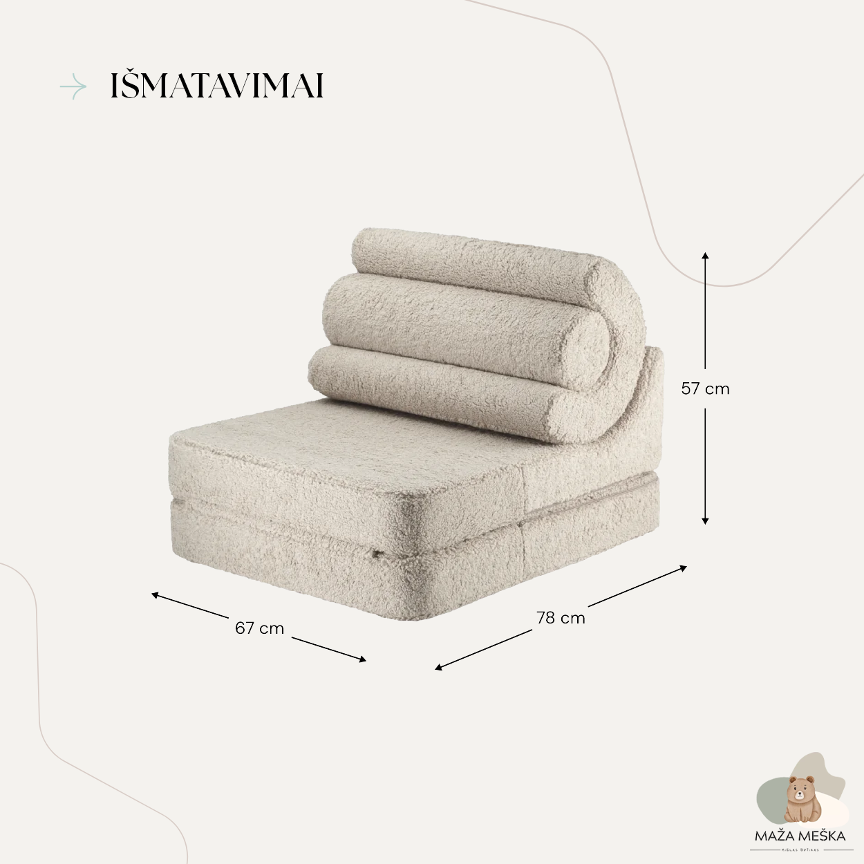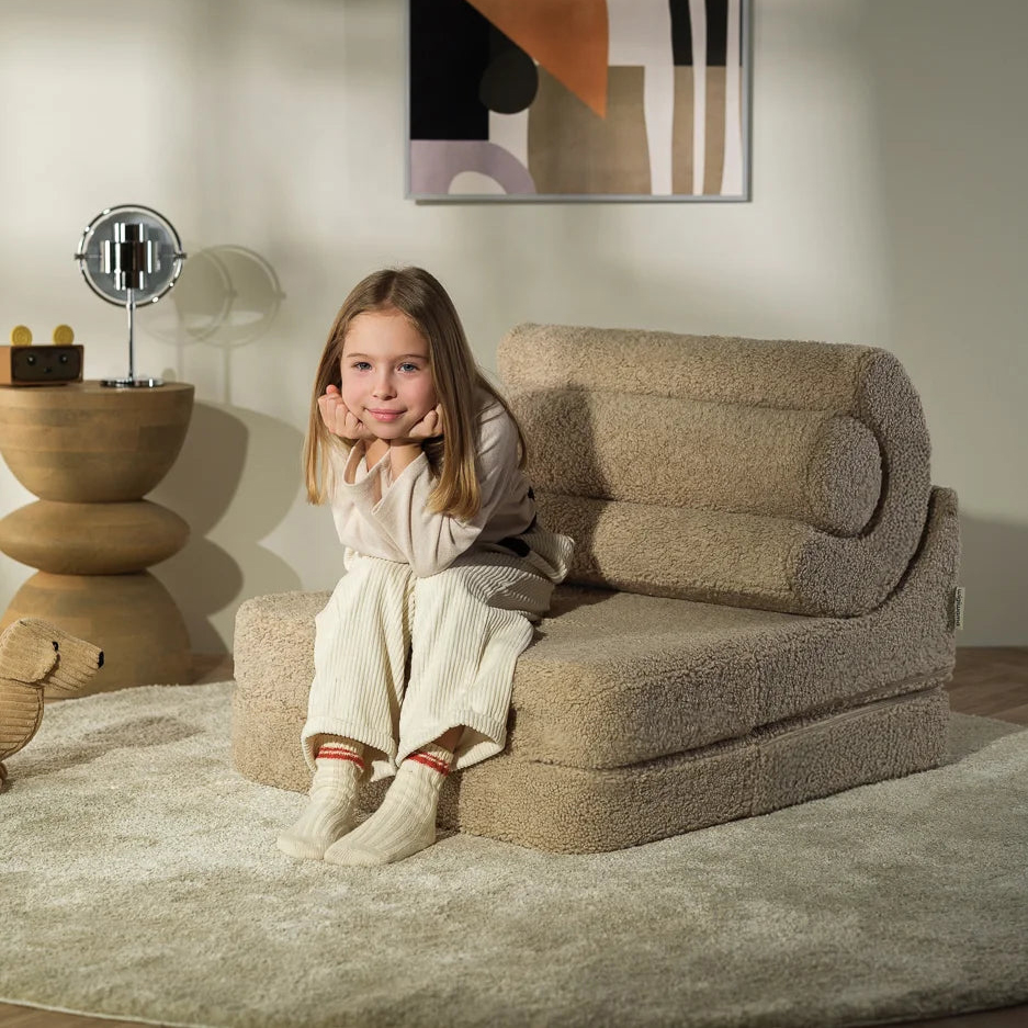 Susipažinkite su Sausainių Spalvos Teddy Kėdė-Gultas FLIPSTER, patobulinta klasikinės kėdės-gulto versija. Ji suteikia dar daugiau komforto, funkcionalumo ir erdvės tiek vaikams, tiek suaugusiems. Dabar ne tik jūsų mažyliai gali mėgautis jaukia vieta poilsiui, bet ir tėvai ar vyresni vaikai gali patogiai atsisėsti, pailsėti ar net nusnausti.