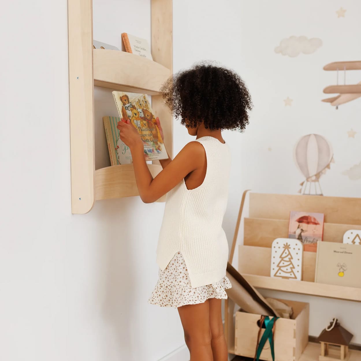 Kviečia vaiką savarankiškai pasiimti knygą ir grąžinti ją į vietą po skaitymo.