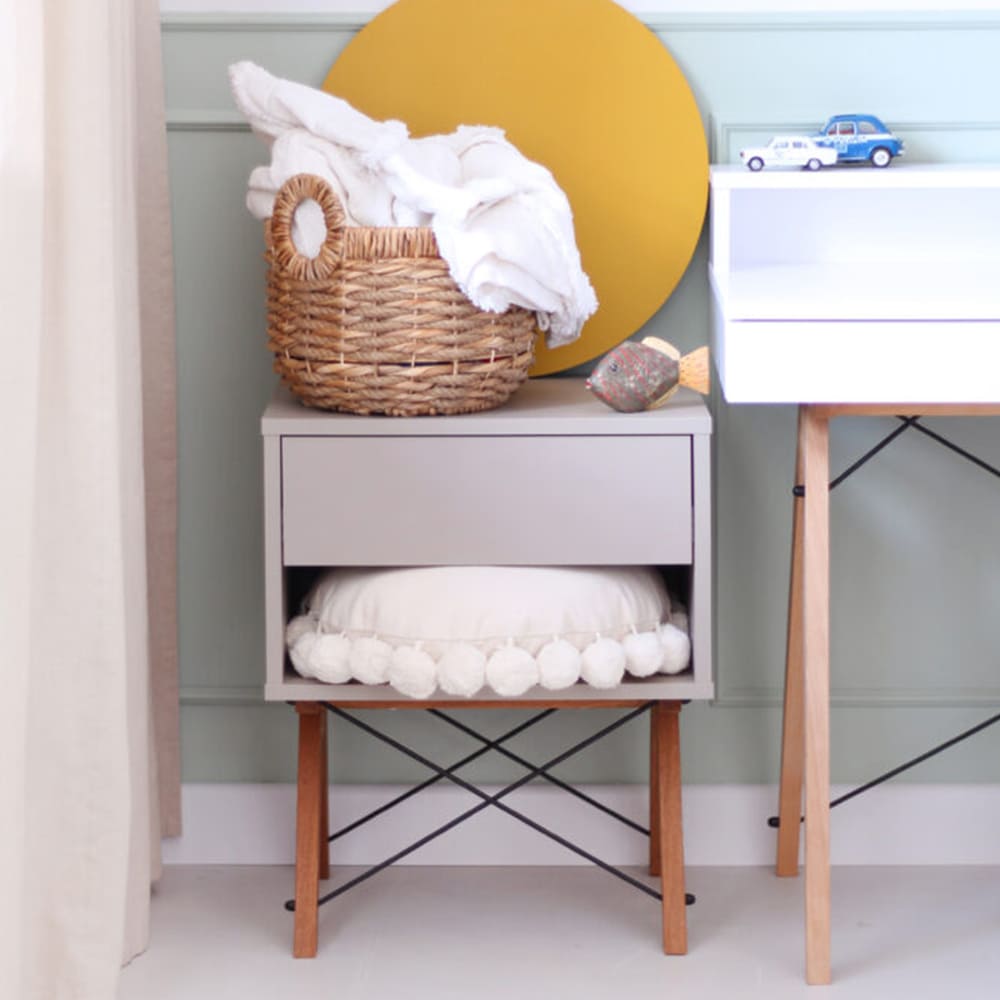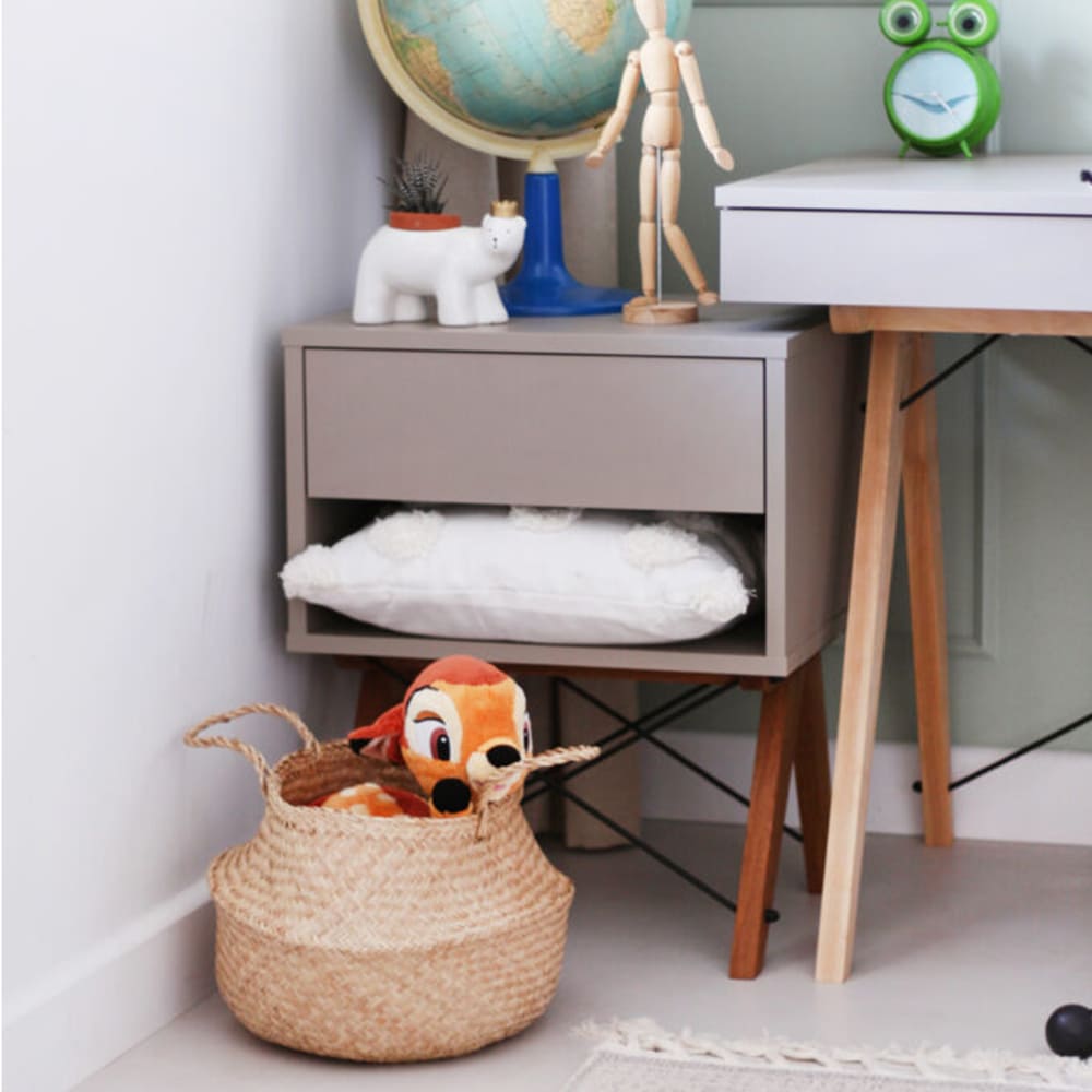 Talpus stalčius ir atvira lentyna padeda vaikui lengvai palaikyti tvarką savo mažame pasaulyje.