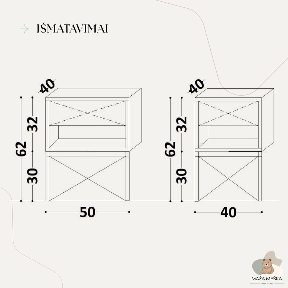 | Dydis | 40x40x62, 50x40x62 |