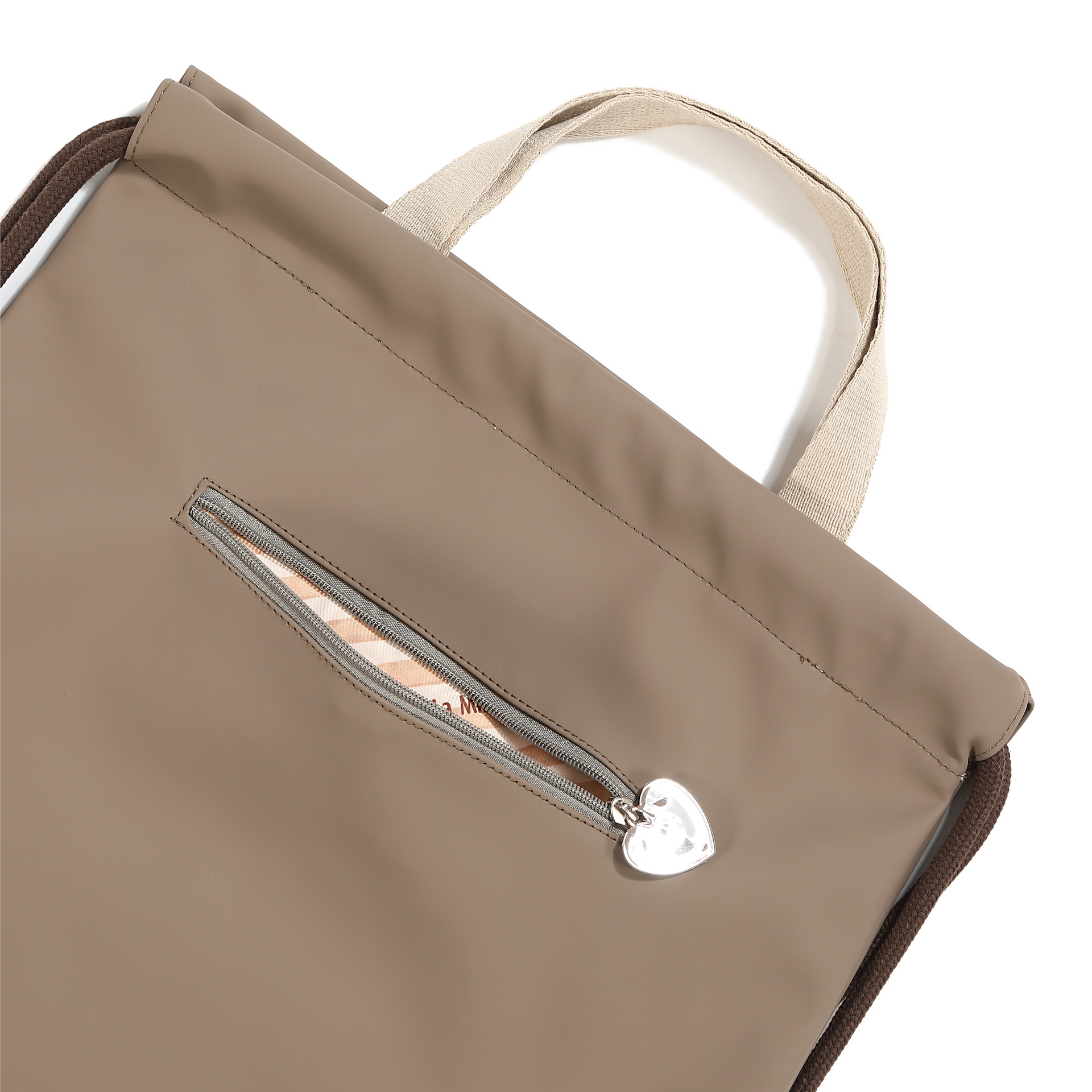 Atsparus vandeniui ir purvui, idealus bet kokioms oro sąlygoms. Trys nešiojimo būdai – ant nugaros, rankoje arba prie vežimėlio. Dvi užsegamos kišenės išlaiko daiktus tvarkingai.