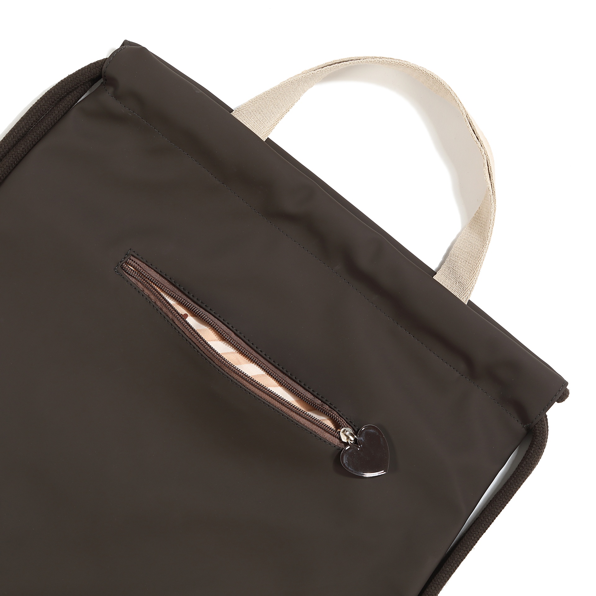Atsparus vandeniui ir purvui, idealus bet kokioms oro sąlygoms. Trys nešiojimo būdai – ant nugaros, rankoje arba prie vežimėlio. Dvi užsegamos kišenės išlaiko daiktus tvarkingai.
