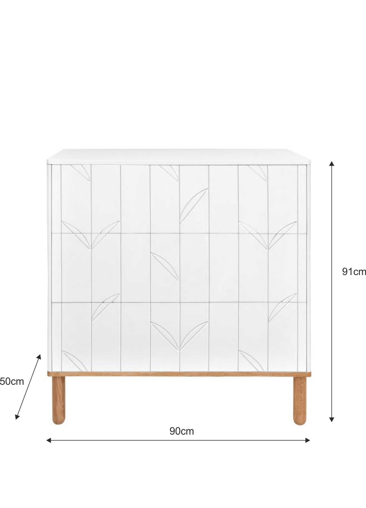 Ši komoda – tikra žvaigždė vaiko kambaryje! ✨ Ne tik talpi ir funkcionali, bet ir papuošta subtiliais botaninių motyvų raštais, ji tampa ne tik daiktų saugojimo baldu, bet ir estetišku interjero akcentu. Trys erdvūs stalčiai leis susidėti viską – nuo kūdikių rūbelių iki žaislų ar kasdienių smulkmenų, kurioms visada reikia savo vietos. 🧸