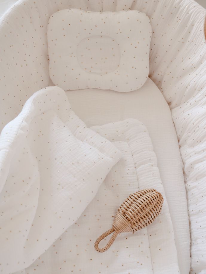 Tekstilė Lopšiui Auksiniai taškeliai Sniego baltumo
