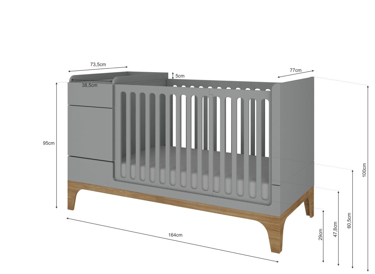Transformujama UP Pilka Kūdikio Lovytė 70×120 – tai lovytė, kuri auga kartu su vaiku ir prisitaiko prie vis kintančių šeimos poreikių. Sukurta remiantis tvarumo idėja, ši sistema – ne tik lovytė, bet ir visa vaiko erdvė. Su spintelių sistema, lentynomis, galimybe integruoti vystymo stalą, o vėliau – net rašomąjį stalą. ♻️