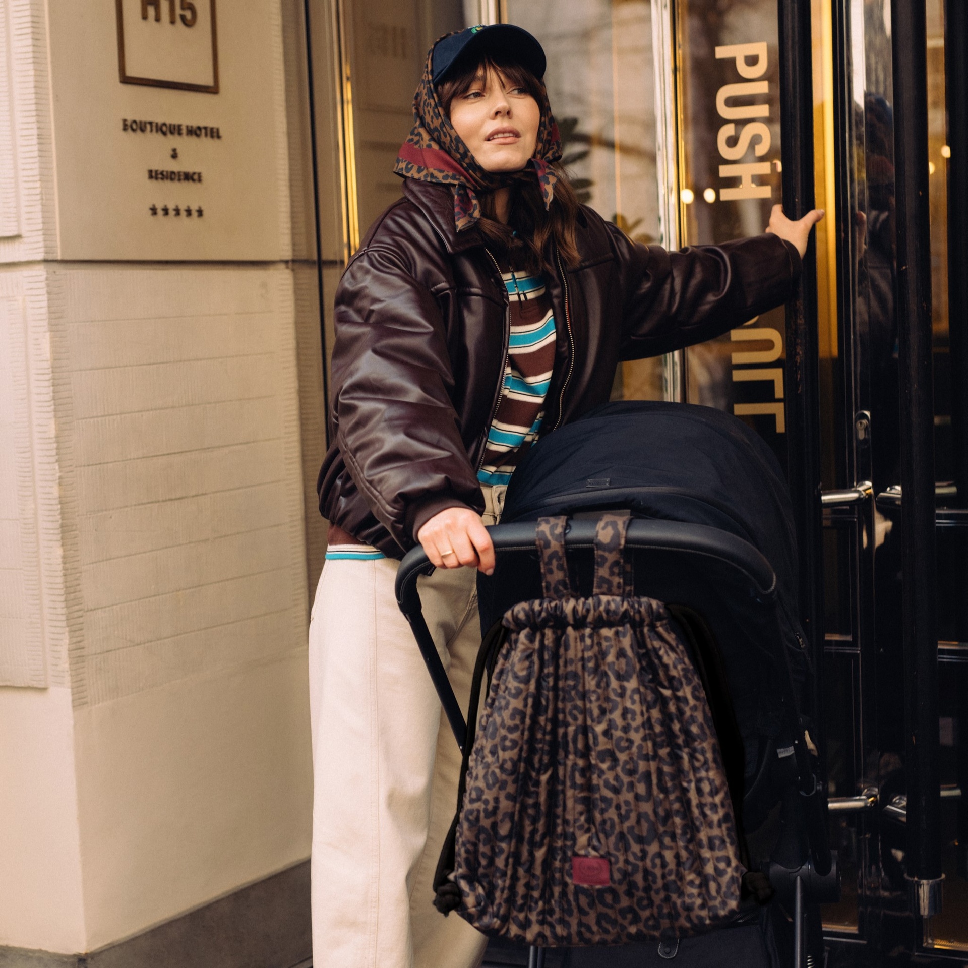 Tvirto Nailono Vežimėlio Kuprinė TAMSUS LEOPARDAS – praktiškas ir stilingas pasirinkimas kiekvienai mamai ir tėčiui. Ši kuprinė sukurta specialiai naudoti su siaurais vežimėliais, tokiais kaip Cybex Coya, Cybex Mios ar Babyzen YOYO. Dėka išmanios konstrukcijos, kuprinė gali būti lengvai užsegama su raišteliais, suteikiant greitą prieigą prie daiktų ir patogų laikymą.
