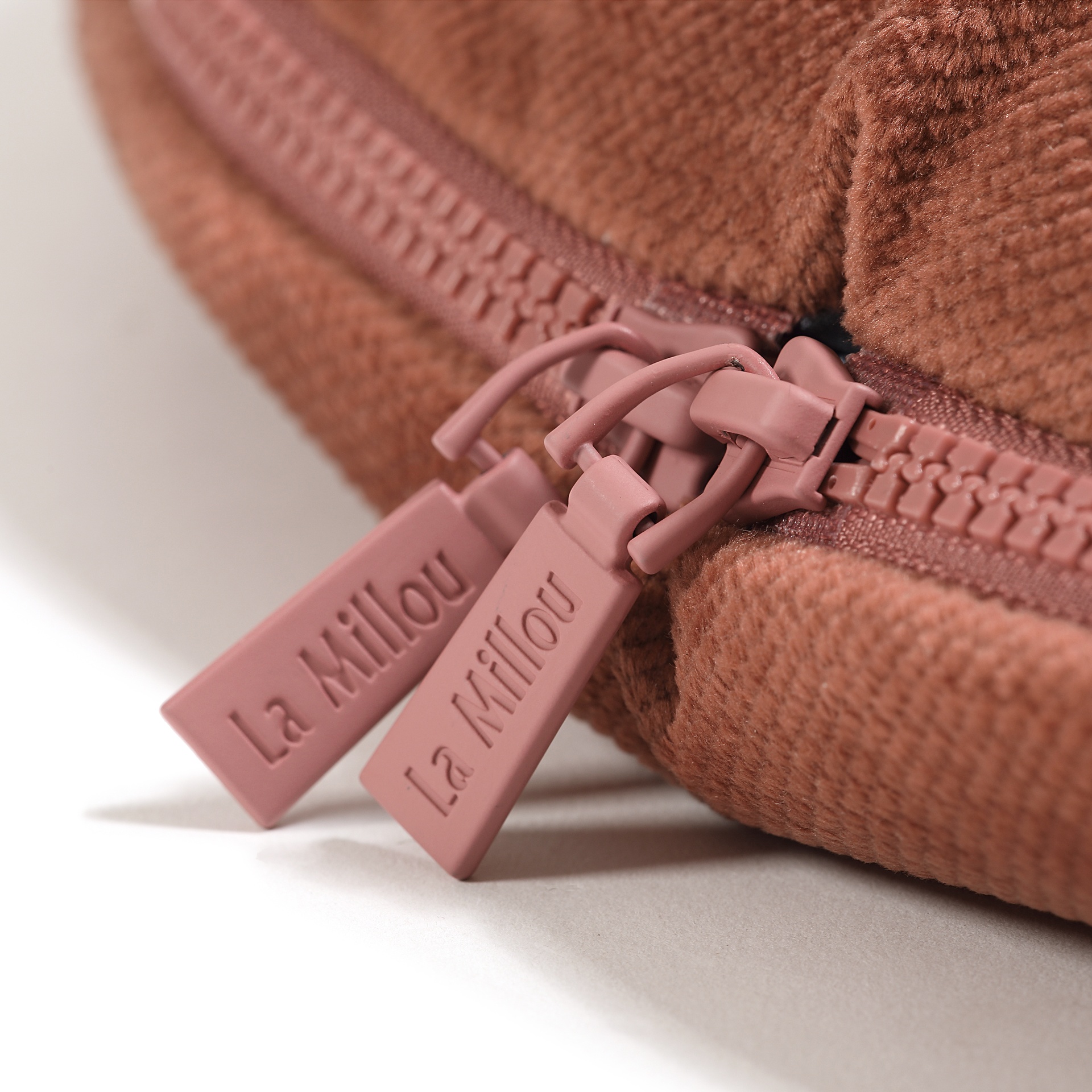 Miegmaišio šonai turi aukštos kokybės užtrauktukus su patogiomis gumytėmis. Užtrauktukai atidaromi iš viršaus ir apačios, todėl galima reguliuoti ventiliaciją arba visiškai nuimti dangą, sukuriant šiltą ir minkštą įdėklą vežimėliui. Šonų atitraukimas leidžia miegmaišį patogiai išplėsti ir pritvirtinti su spaustukais. Nugaros pusėje esantys angos tinka 5 taškų saugos sistemai daugumoje vežimėlių. Papildomas audinio sluoksnis ant gobtuvo nugaros užtikrina, kad miegmaišis nepaslystų vežimėlio nugarėlėje.