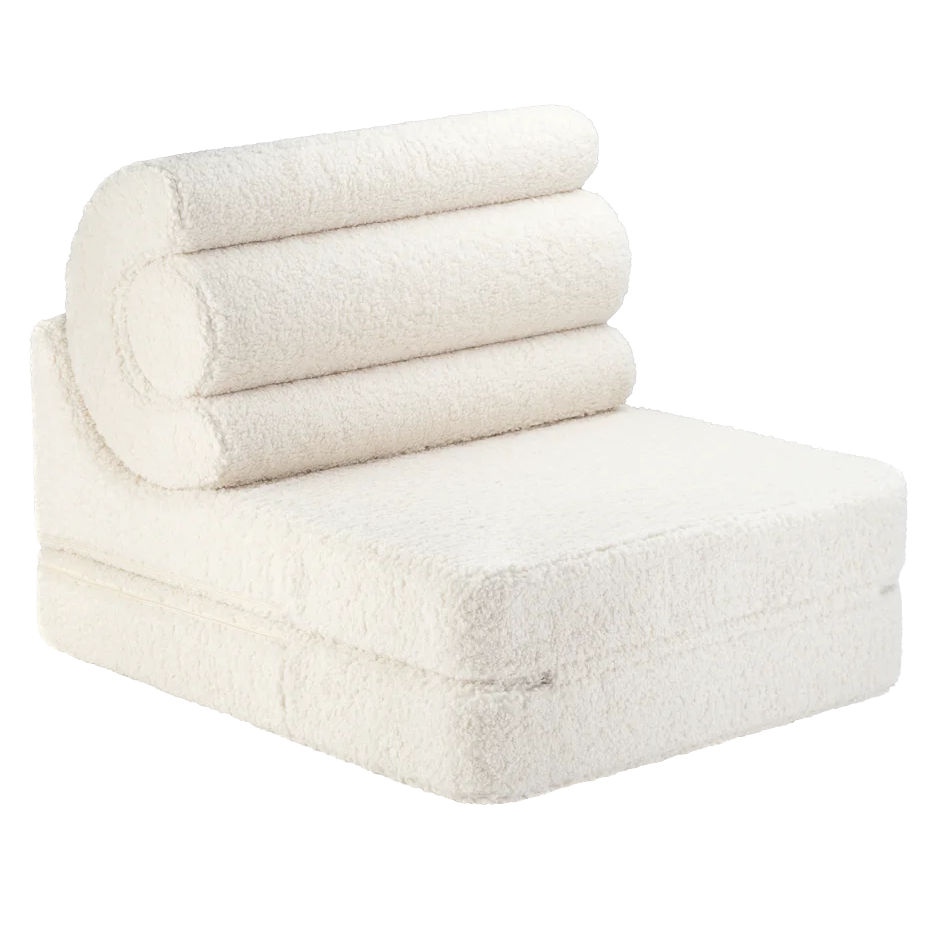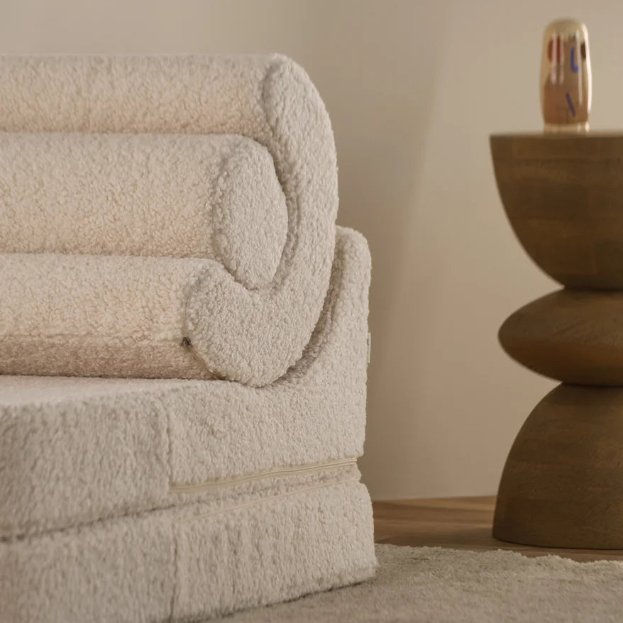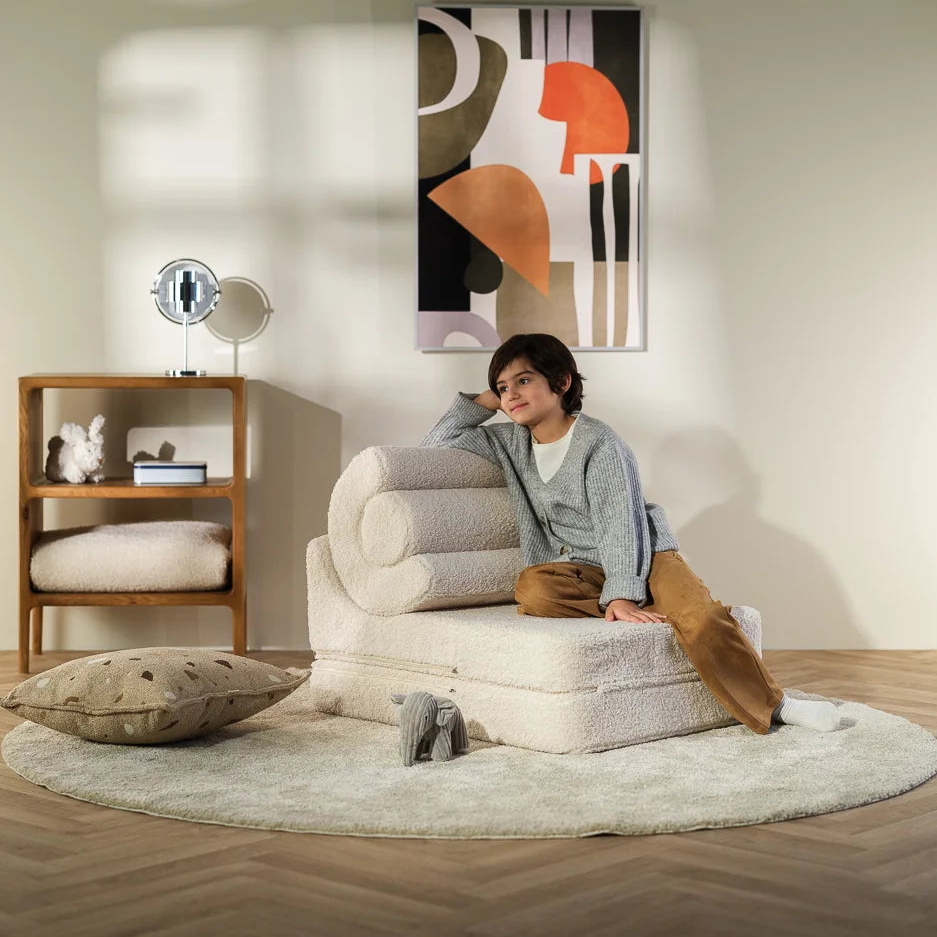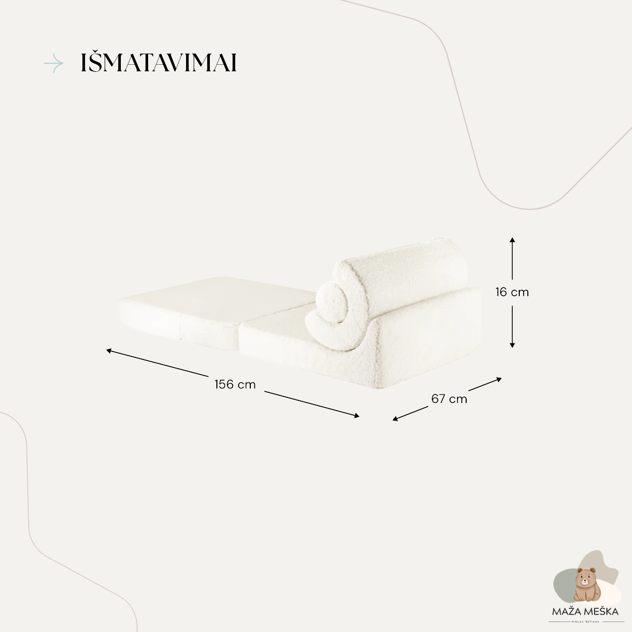 Susipažinkite su Vaikiška Balta Teddy Kėdė-Gultas FLIPSTER, patobulinta klasikinės kėdės-gulto versija. Ji suteikia dar daugiau komforto, funkcionalumo ir erdvės tiek vaikams, tiek suaugusiems. Dabar ne tik jūsų mažyliai gali mėgautis jaukia vieta poilsiui, bet ir tėvai ar vyresni vaikai gali patogiai atsisėsti, pailsėti ar net nusnausti.