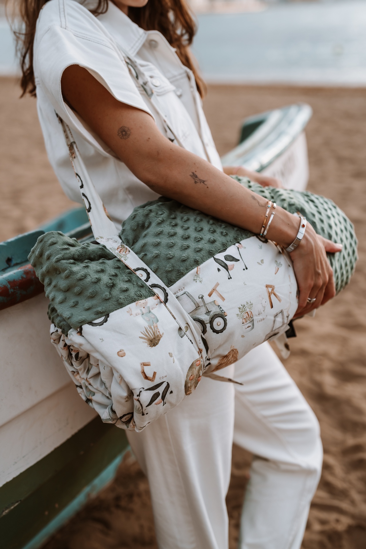 Vaikiška Lauko Antklodė ABC FERMA – tai praktiškas ir patogus sprendimas visoms lauko veikloms su vaikais. Nesvarbu, ar planuojate pikniką gamtoje, žaidimus paplūdimyje, šeimos išvyką ar tiesiog smagiai leisti laiką kieme – ši antklodė taps nepakeičiamu aksesuaru kiekvienai progai. Jos universalus dydis suteikia pakankamai vietos vaikui žaisti arba patogiai atsisėsti su visa šeima.