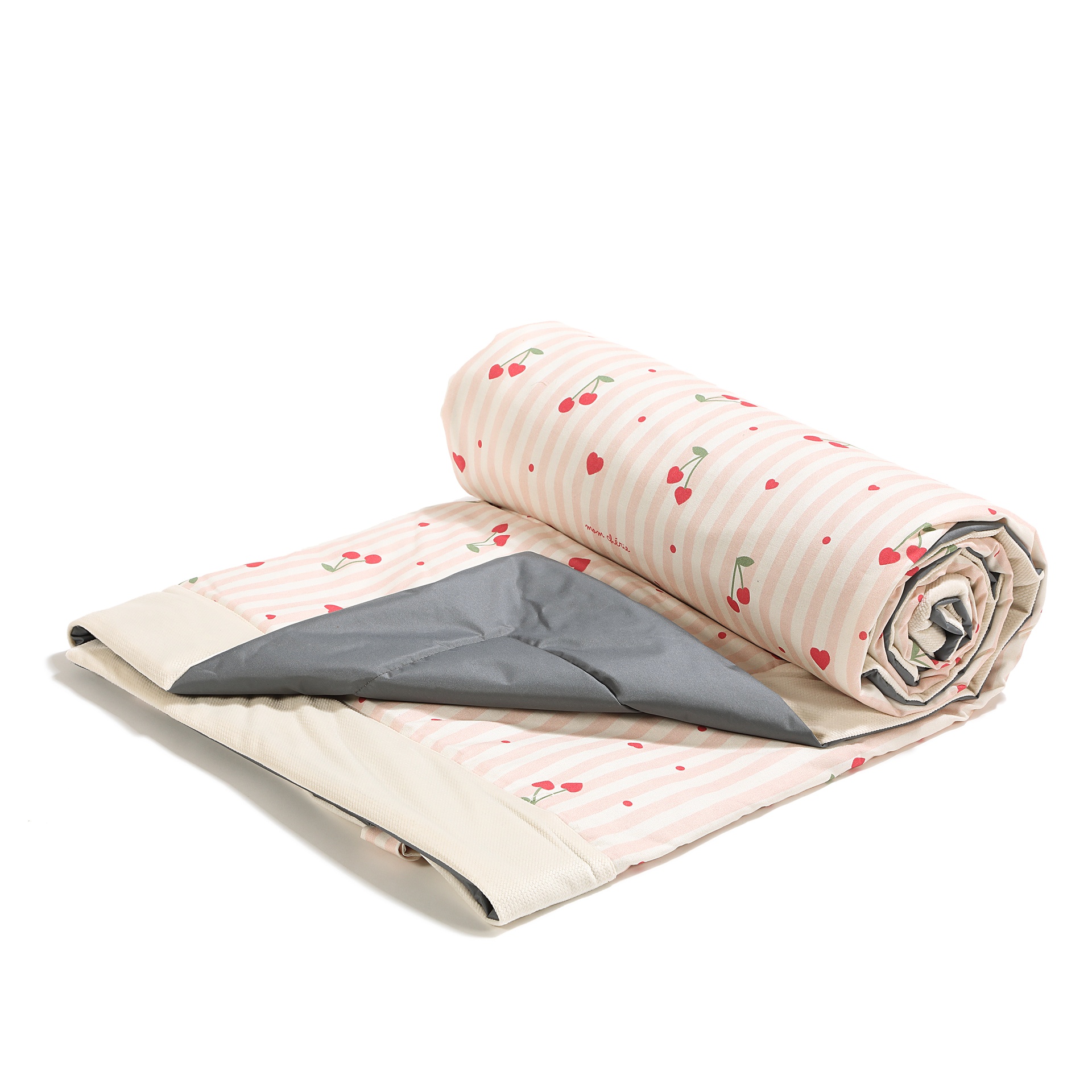 Vaikiška Lauko Antklodė Aksominė VYŠNIOS – tai praktiškas ir patogus sprendimas visoms lauko veikloms su vaikais. Nesvarbu, ar planuojate pikniką gamtoje, žaidimus paplūdimyje, šeimos išvyką ar tiesiog smagiai leisti laiką kieme – ši antklodė taps nepakeičiamu aksesuaru kiekvienai progai. Jos universalus dydis suteikia pakankamai vietos vaikui žaisti arba patogiai atsisėsti su visa šeima.