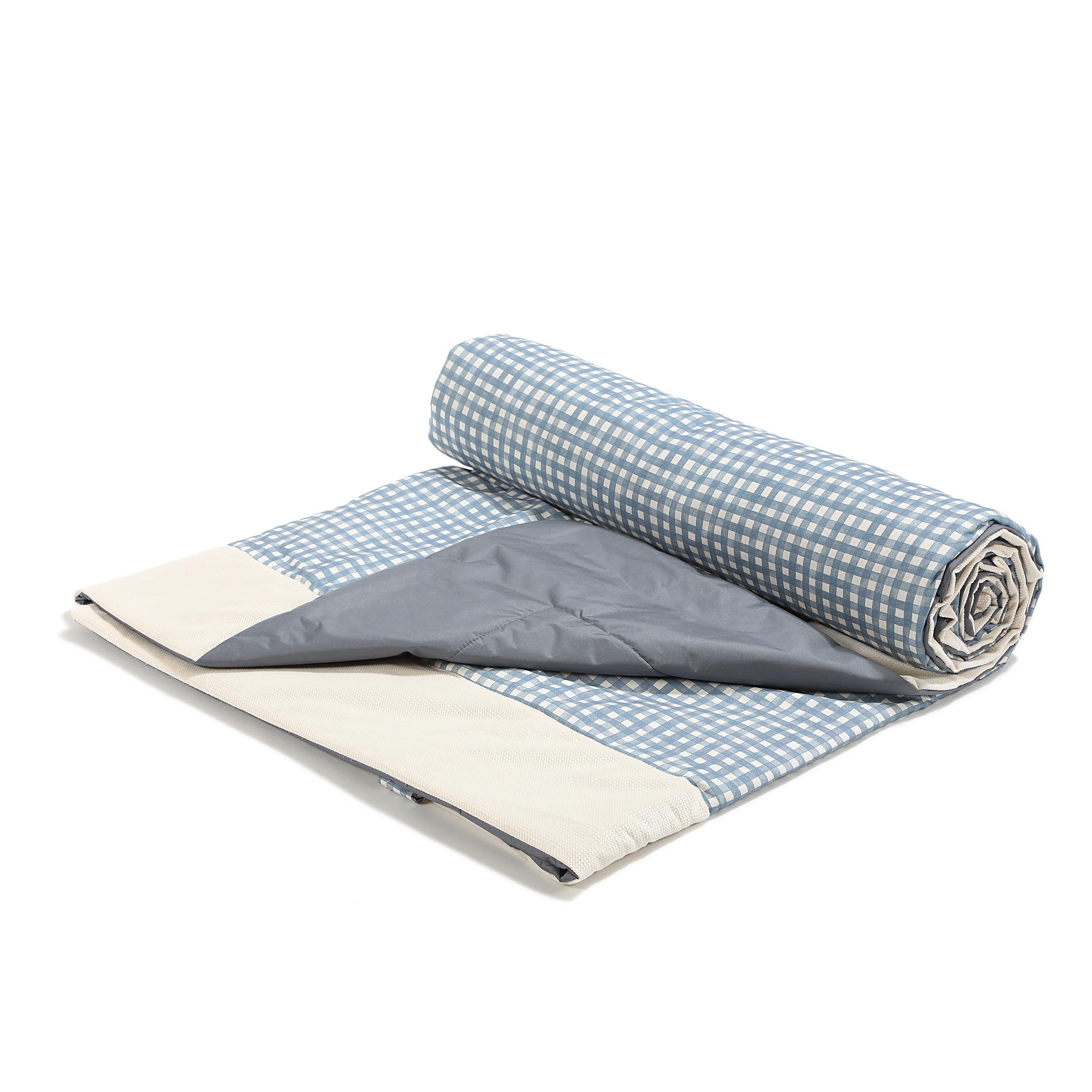 Vaikiška Lauko Antklodė MĖLYNI LANGELIAI – tai praktiškas ir patogus sprendimas visoms lauko veikloms su vaikais. Nesvarbu, ar planuojate pikniką gamtoje, žaidimus paplūdimyje, šeimos išvyką ar tiesiog smagiai leisti laiką kieme – ši antklodė taps nepakeičiamu aksesuaru kiekvienai progai. Jos universalus dydis suteikia pakankamai vietos vaikui žaisti arba patogiai atsisėsti su visa šeima.