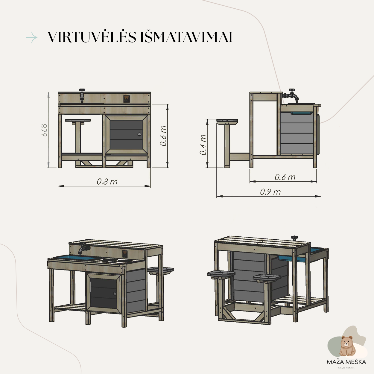 Virtuvėlė: 80 x 90 x 67 cm