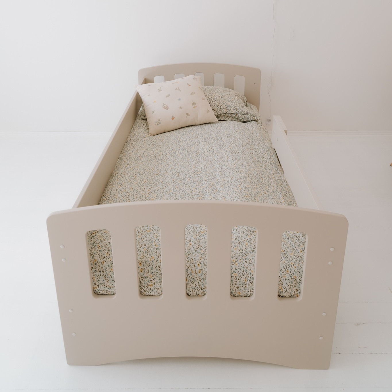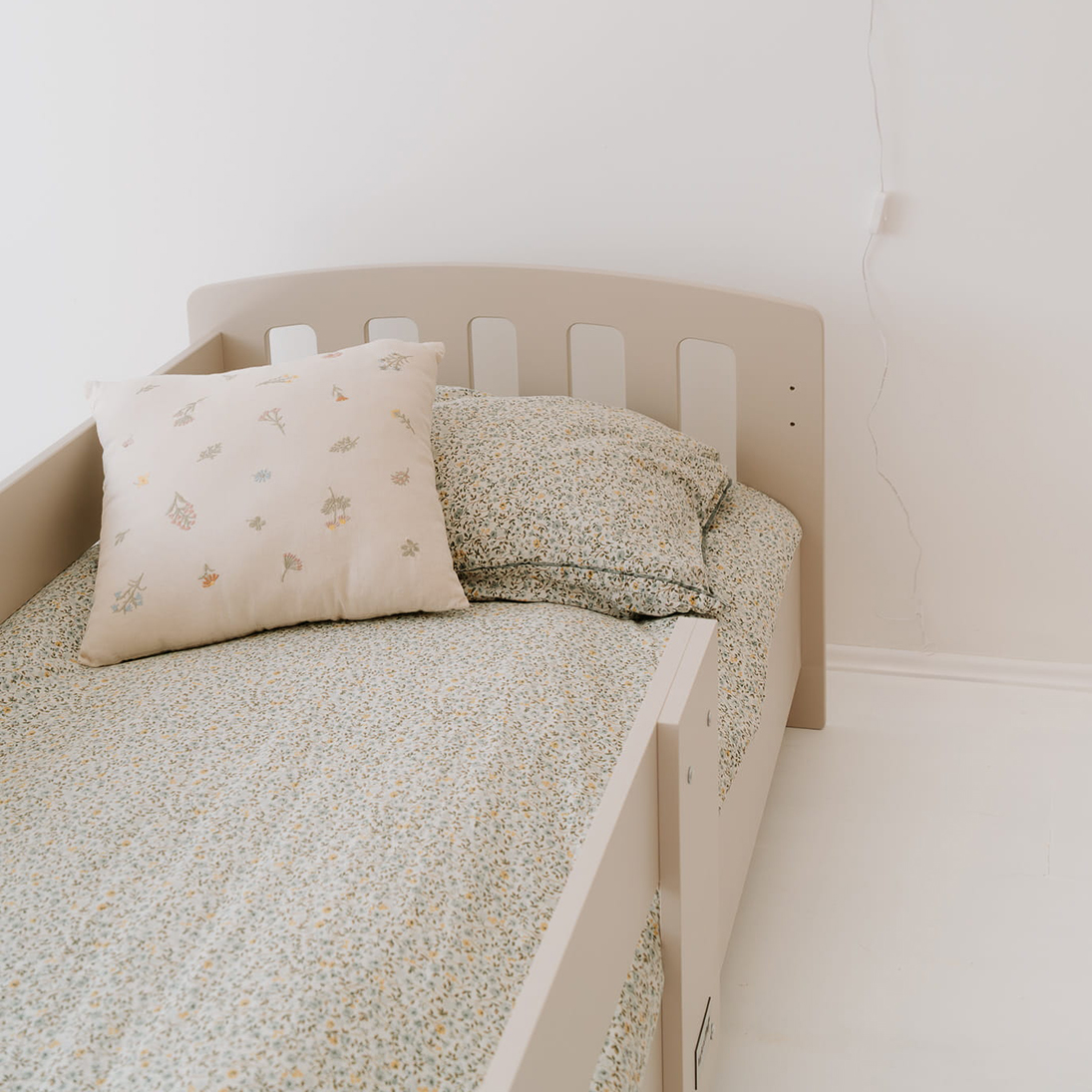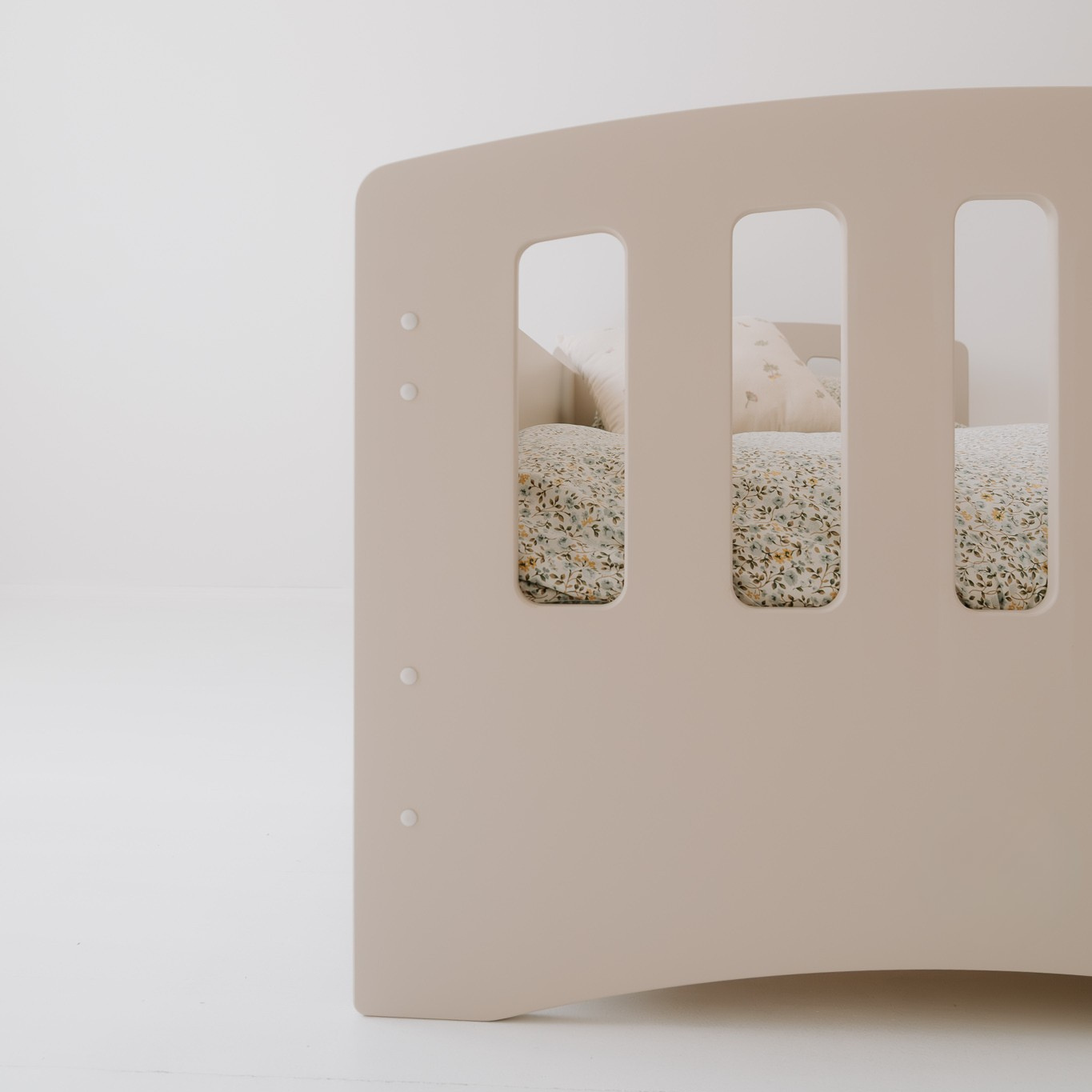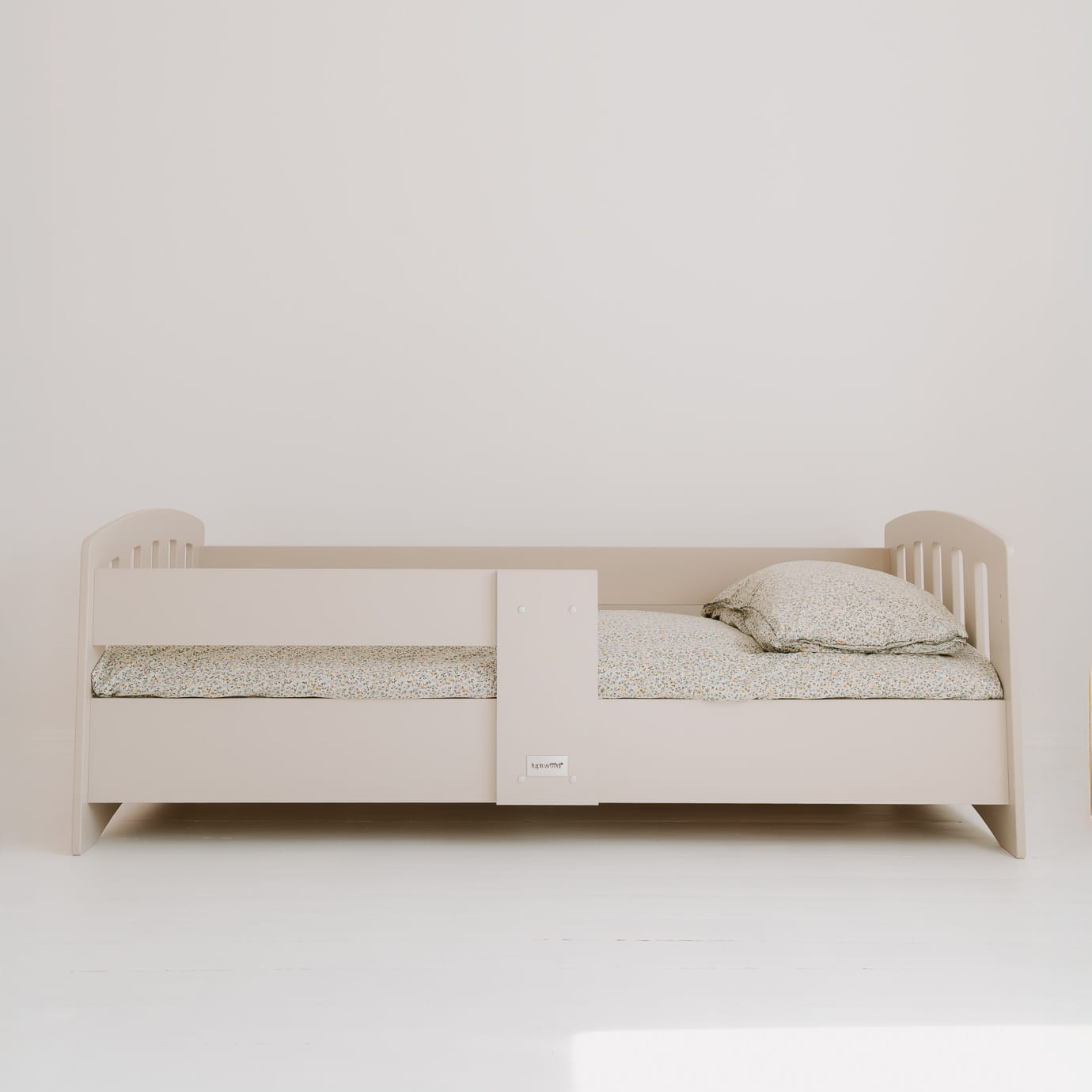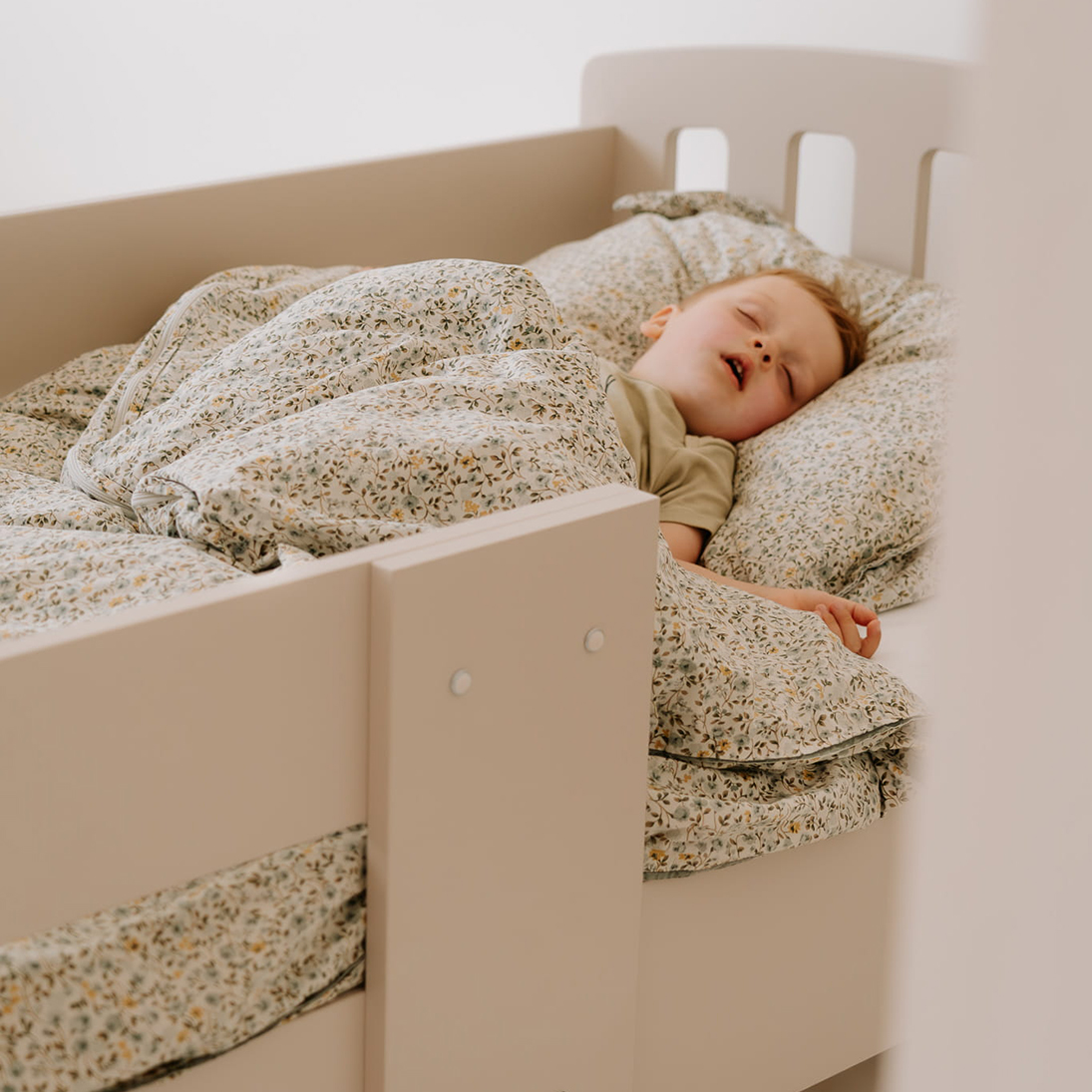 Ypatingas privalumas – apsauginis bortelis, kurį galima montuoti bet kurioje lovos pusėje ir lengvai perkelti keičiant kambario išdėstymą. Rekomenduojama jį montuoti vaiko galvūgalyje, kad miegas būtų dar ramesnis. Tai lankstus sprendimas šeimoms, kurios mėgsta pokyčius.