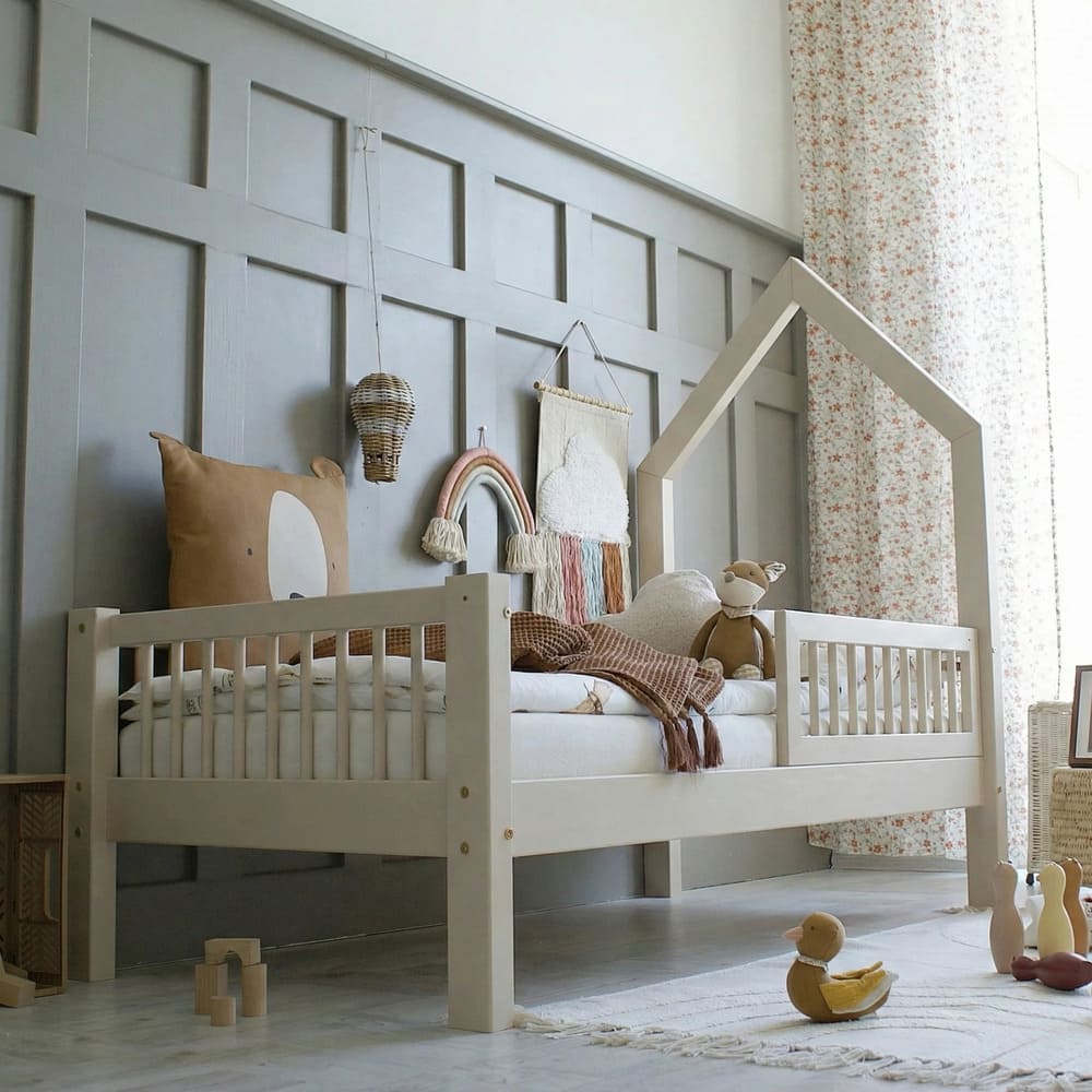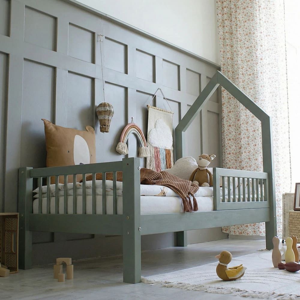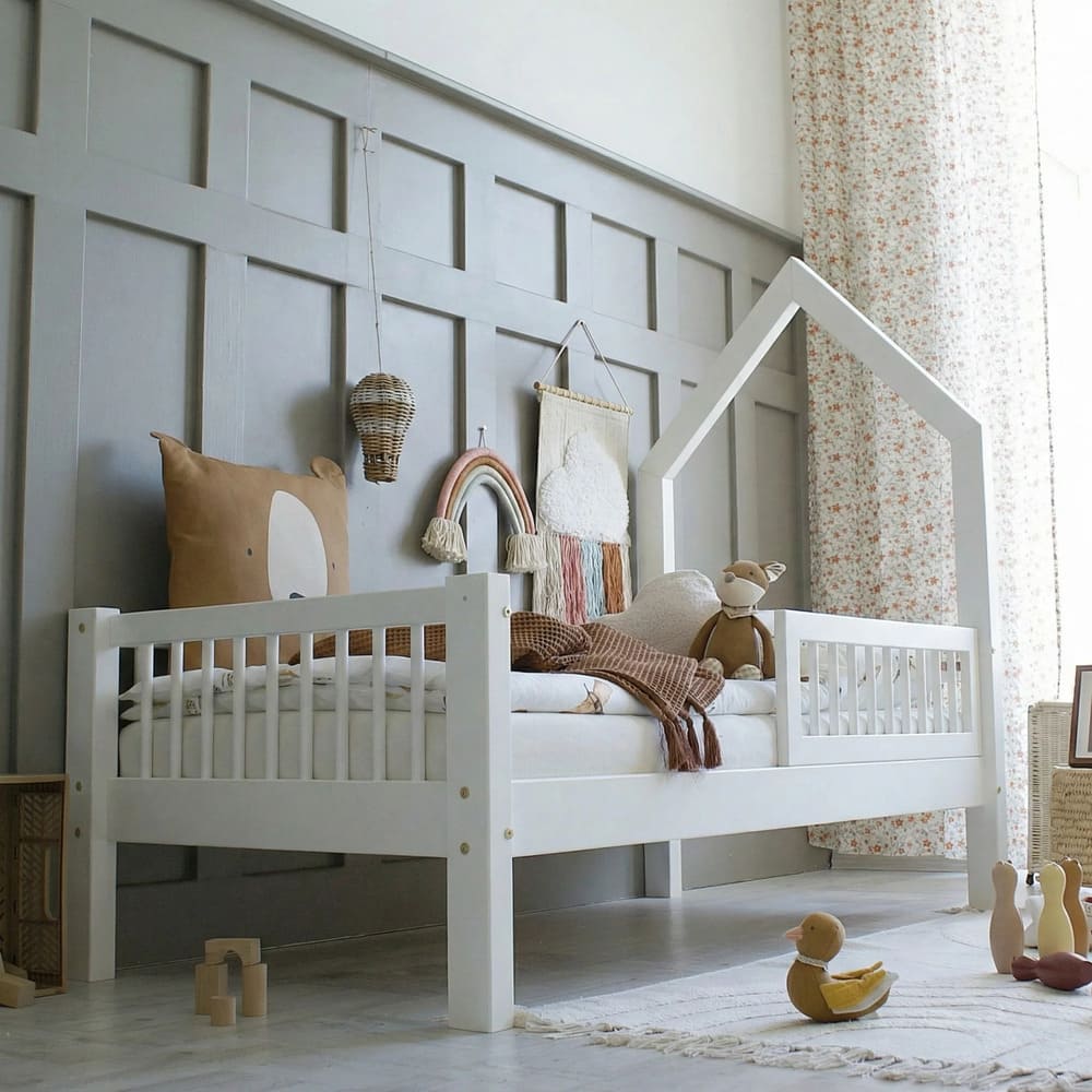 Jaukus kampelis namuose, kuriame auga ramybė, šiluma ir gražios vaikystės akimirkos.