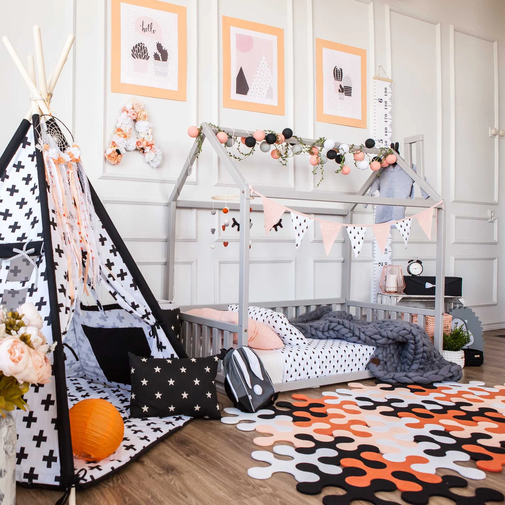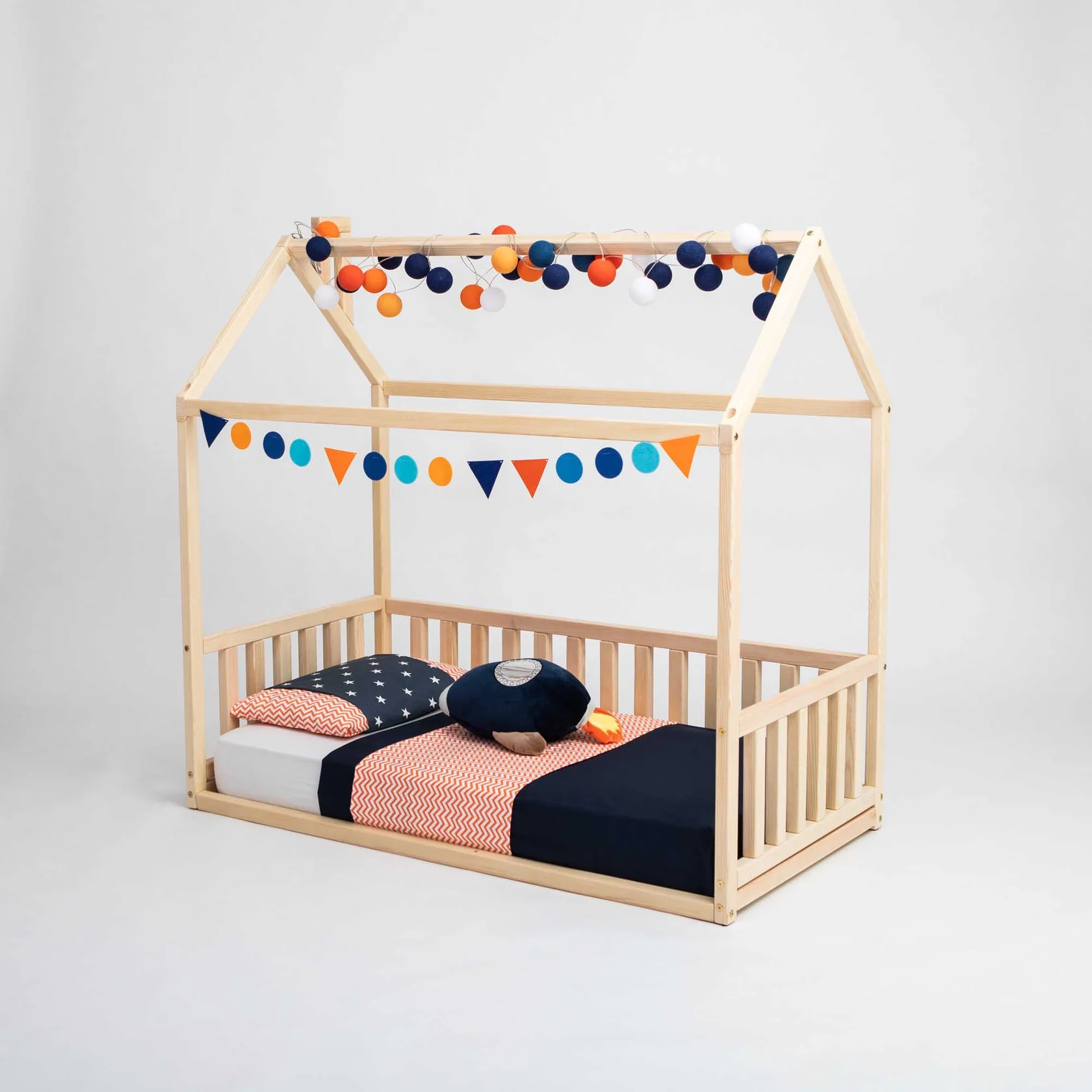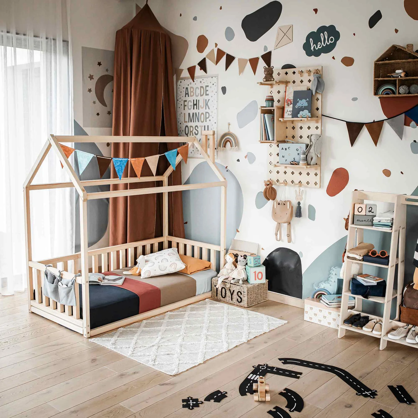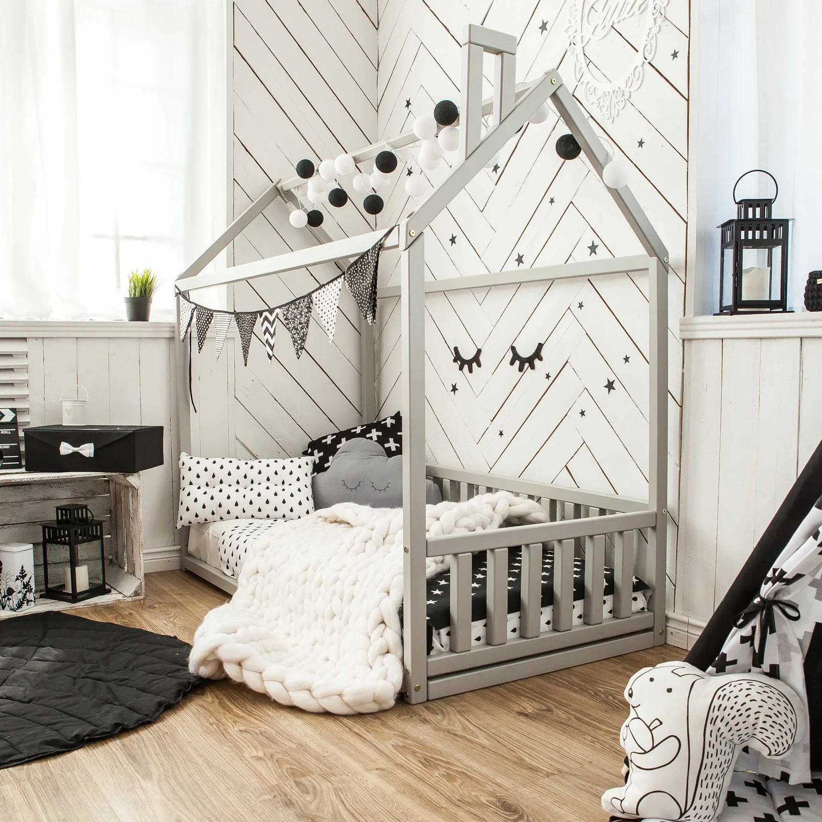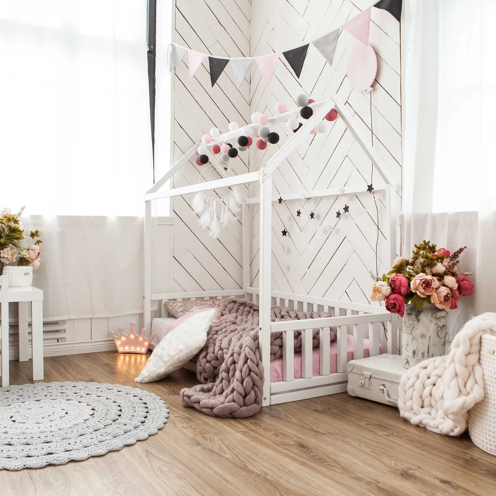 Vaikiška lova-namelis su apsaugomis – puikus sprendimas mažųjų saugumui ir savarankiškumo ugdymui. Montessori įkvėptas žemos padėties dizainas leidžia vaikui lengvai įlipti ir išlipti iš lovos, skatindamas savarankiškumą ir pasitikėjimą savimi. Tai tobulas perėjimas nuo kūdikio lovytės prie didesnės vaiko lovos, suteikiantis jaukumą ir komfortą.