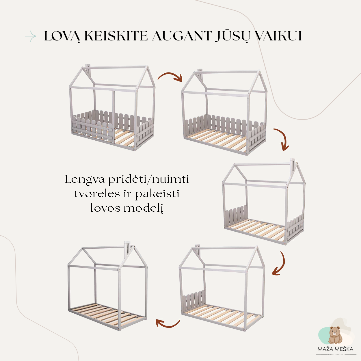 Pristatome dar vieną naujieną mažiesiems svajotojams – Montessori įkvėptas loveles! Vaikiška lova namelis su vertikalia tvorele skirta ne tik saldžiam miegui, bet ir kasdieniams nuotykiams bei svajonėms!