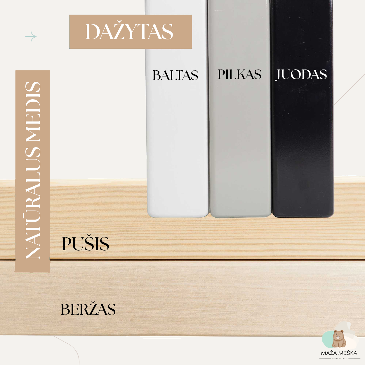 - Galimos spalvos: nedažyta pušis, nedažytas beržas, balta, pilka, juoda