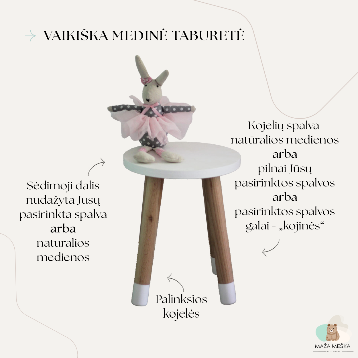 | Staliuko ir kėdutės kojų spalva | Natūralios, medinės, Pasirinktos spalvos, Pusiau baltos, Pusiau spalvotos – pasirinktos spalvos |