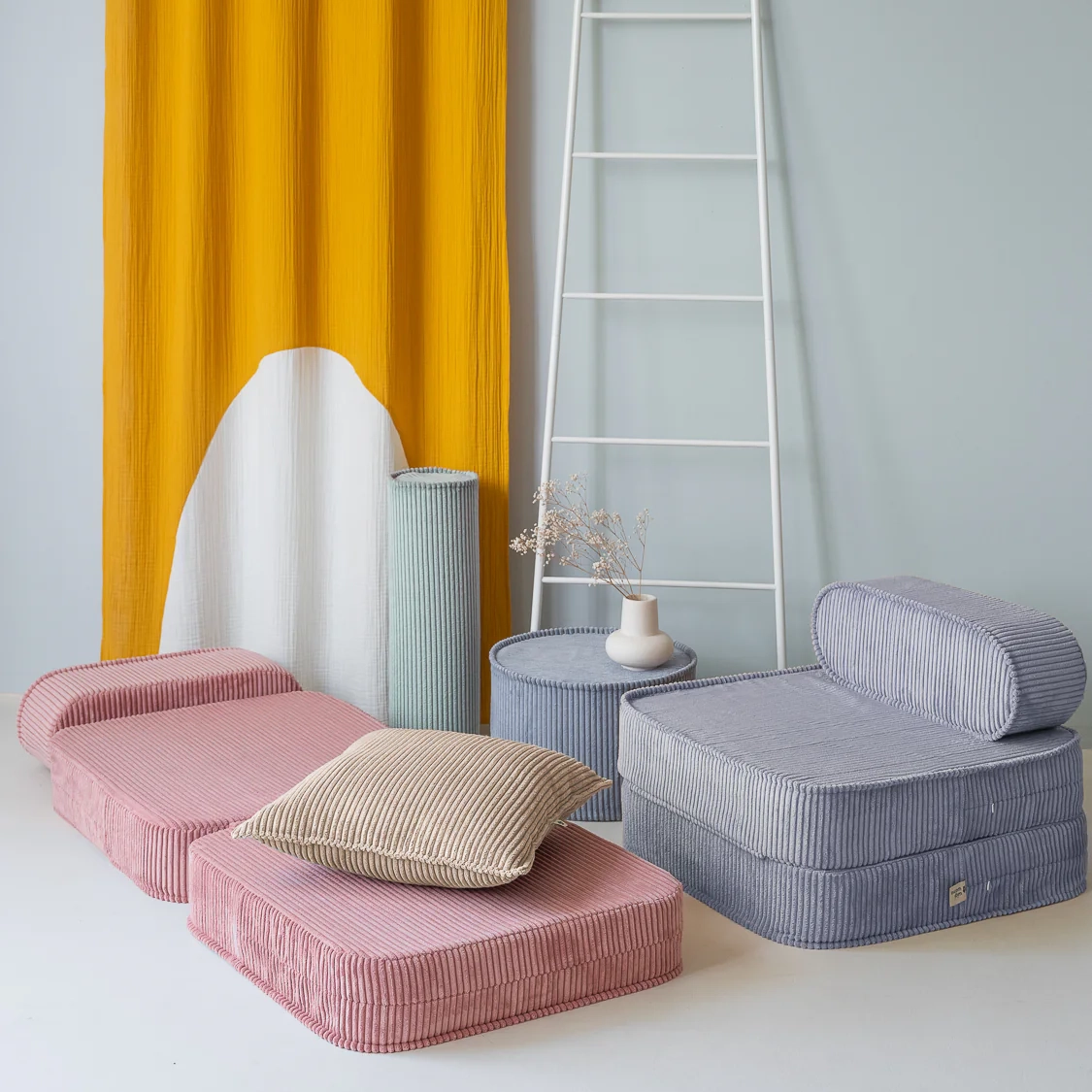 Pagaminta iš OEKO-TEX® ir GRS® sertifikuoto, plačiaraiščio korduro. Minkštos, jaukios medžiagos, pagamintos iš perdirbtų PET butelių. Ši kėdė-gultas yra draugiška ir vaikui, ir gamtai. Viduje – ISO sertifikuotas poliuretano putų užpildas, kuris suteikia reikiamą minkštumą bei atramą.