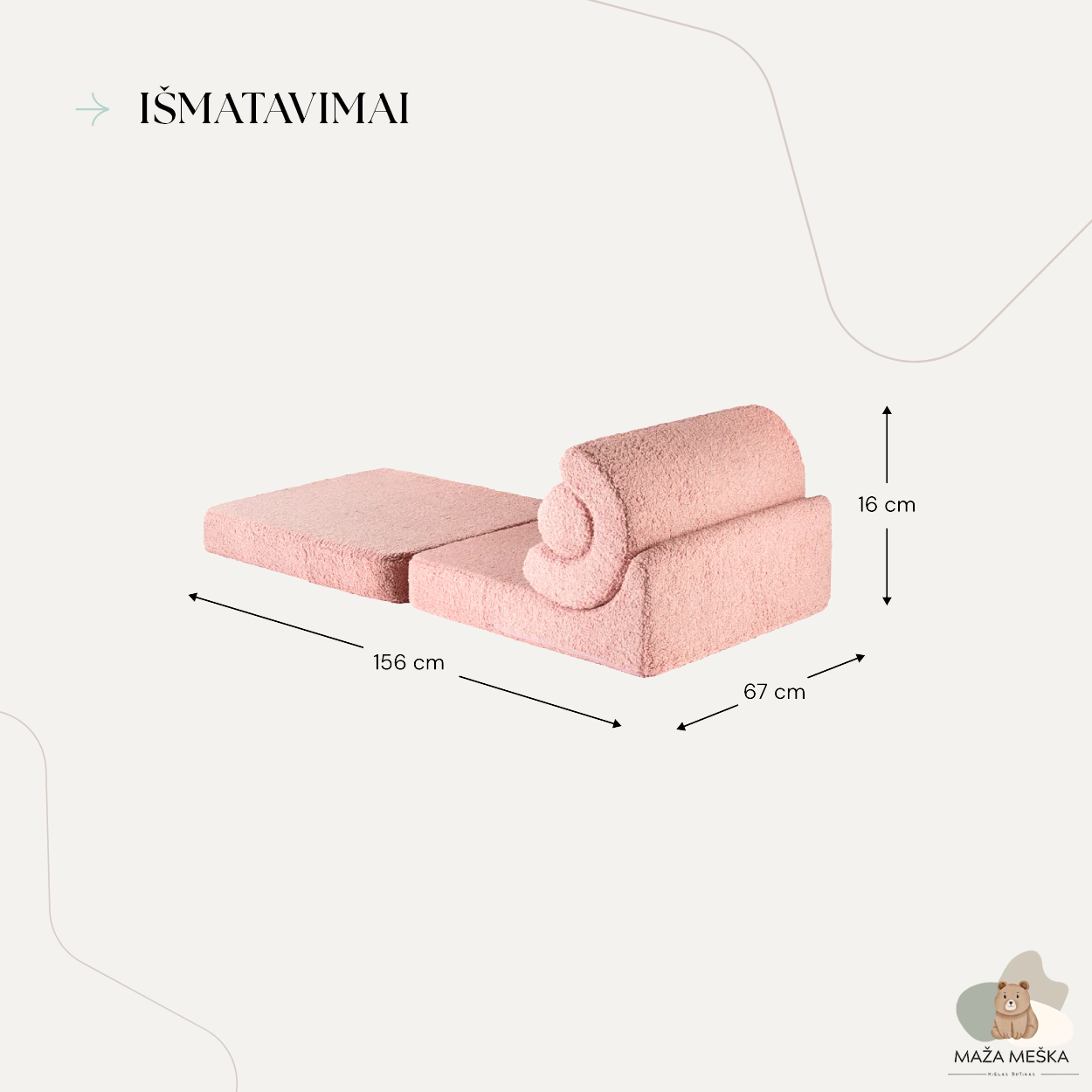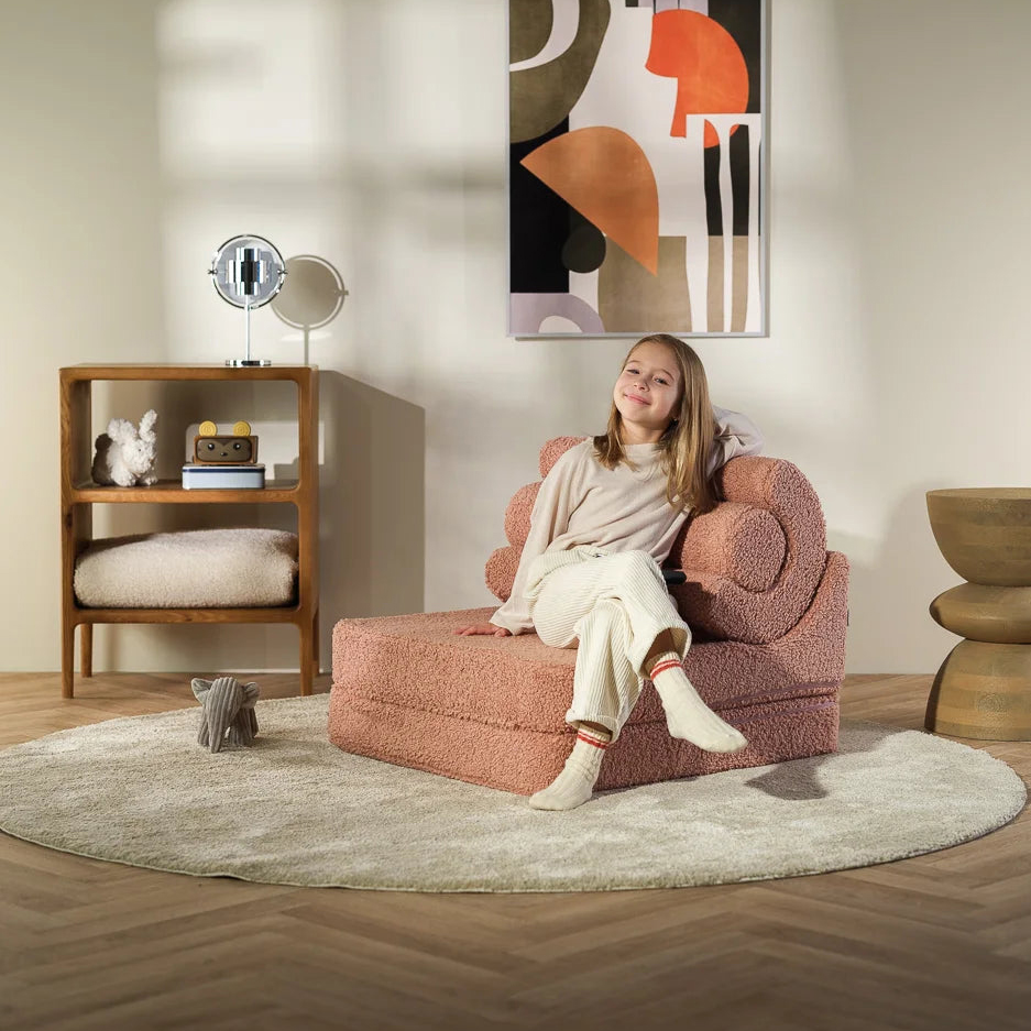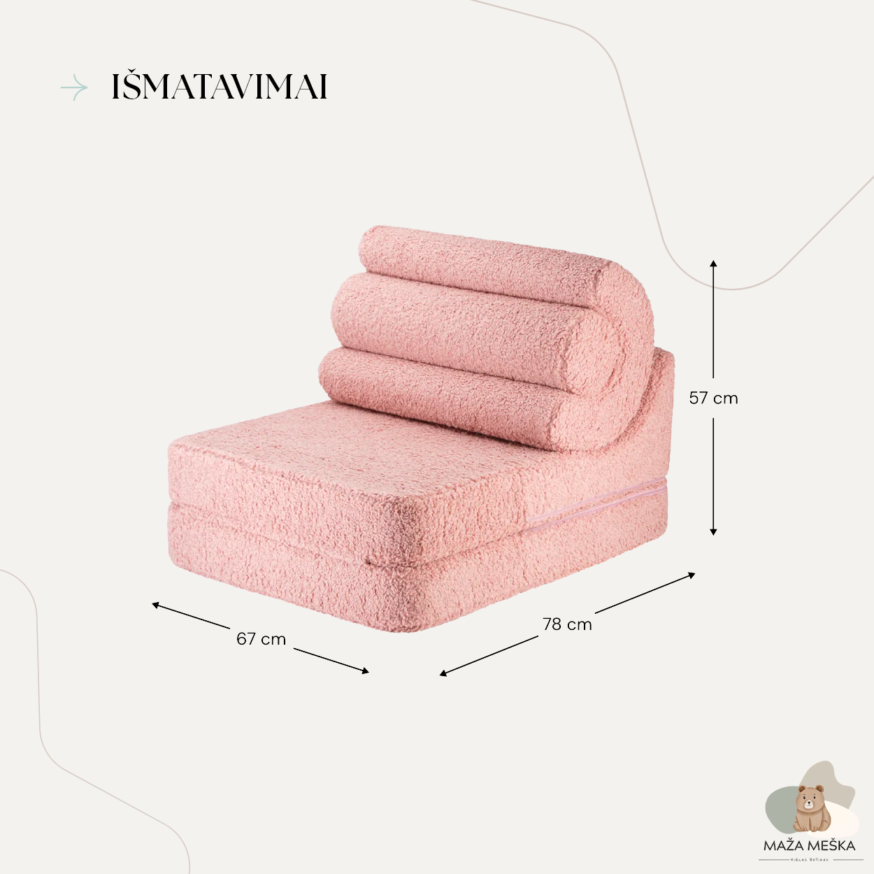 Susipažinkite su Vaikiška Rausva Teddy Kėdė-Gultas FLIPSTER, patobulinta klasikinės kėdės-gulto versija. Ji suteikia dar daugiau komforto, funkcionalumo ir erdvės tiek vaikams, tiek suaugusiems. Dabar ne tik jūsų mažyliai gali mėgautis jaukia vieta poilsiui, bet ir tėvai ar vyresni vaikai gali patogiai atsisėsti, pailsėti ar net nusnausti.
