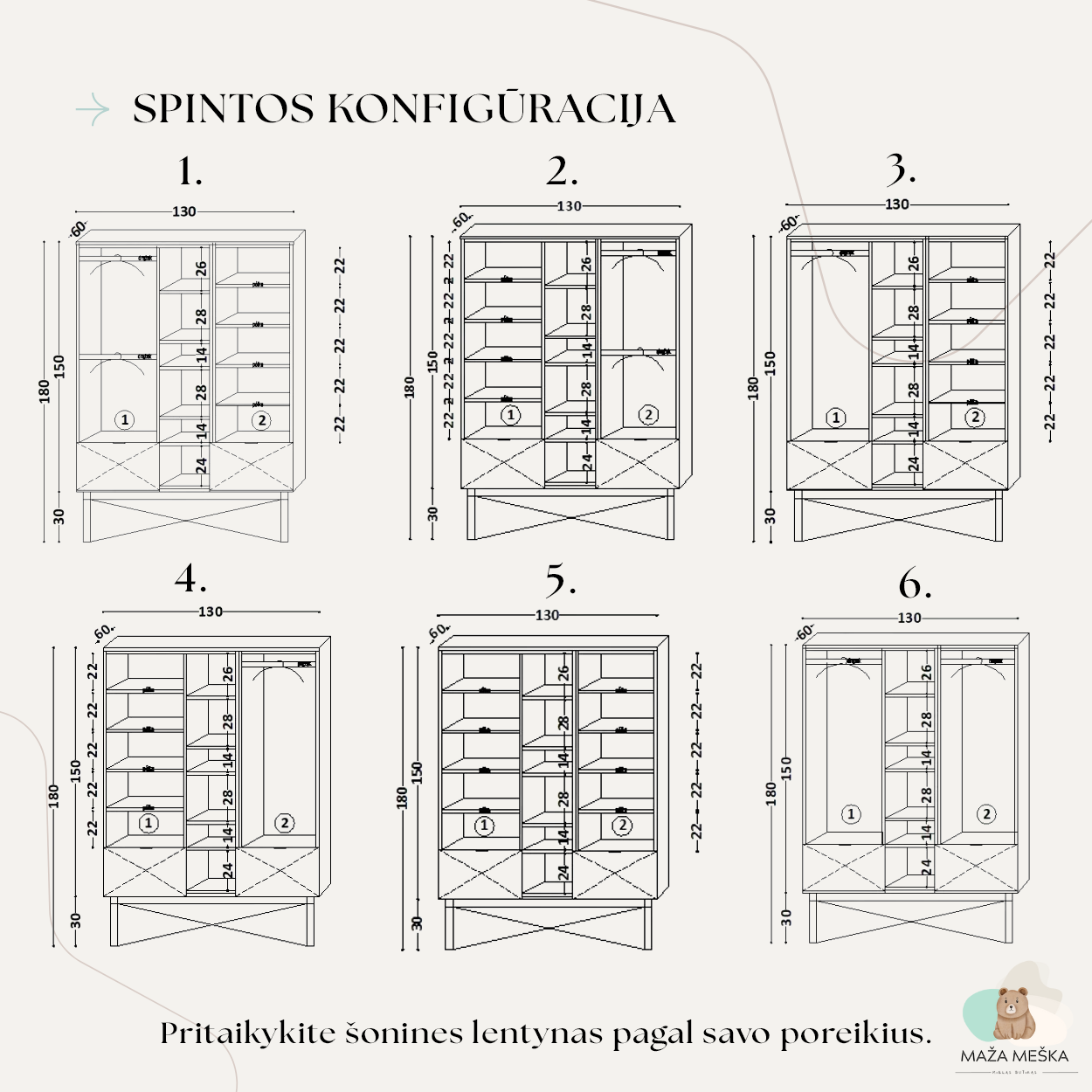 | Spintos spalva | Ąžuolas, Baltas ąžuolas, Black, Brick, Bukas, Dusty pink, Green, Ice blue, Jungle, Kašmyras, Light grey, Light mustard, Lilly, Mint blue, Oceanic, Pistacija, Plum, Riešutas, Taupe, White |