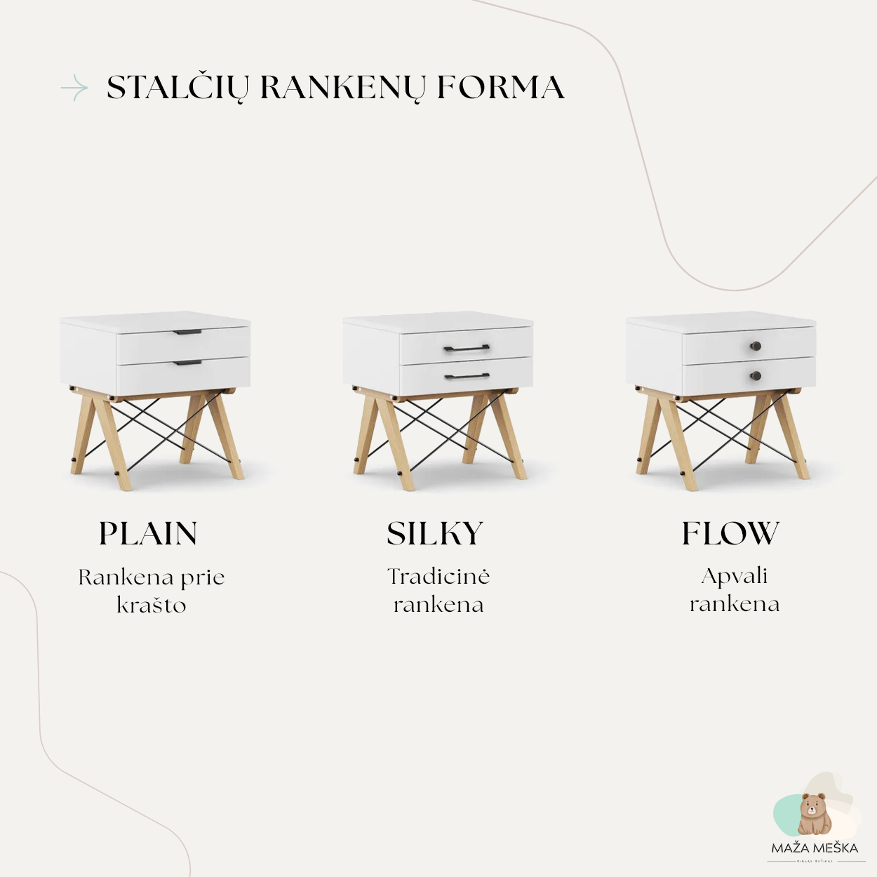 | Rankenų forma | Flow, Plain, Silky |