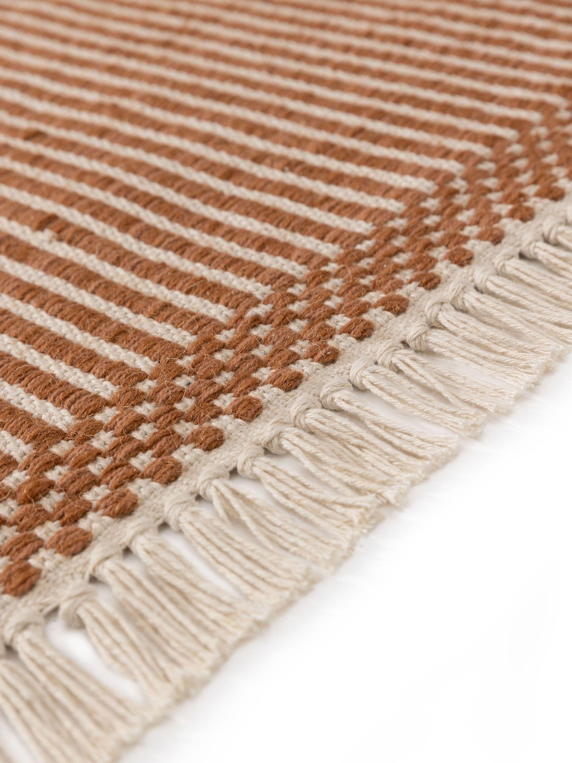 Šis kilimas yra austas rankomis iš 70 % medvilnės ir 30 % vilnos. Toks derinys užtikrina optimalų komfortą – kilimas yra pakankamai minkštas, kad būtų malonu vaikščioti basomis, tačiau kartu ir patvarus, kad atlaikytų kasdienį naudojimą. Medvilnė suteikia lengvumo, užtikrina oro cirkuliaciją ir yra maloni prisiliesti, o vilna pasižymi natūraliomis izoliacinėmis savybėmis – ji padeda išlaikyti šilumą, todėl grindys visuomet jaukiai šildys mažas kojytes.
