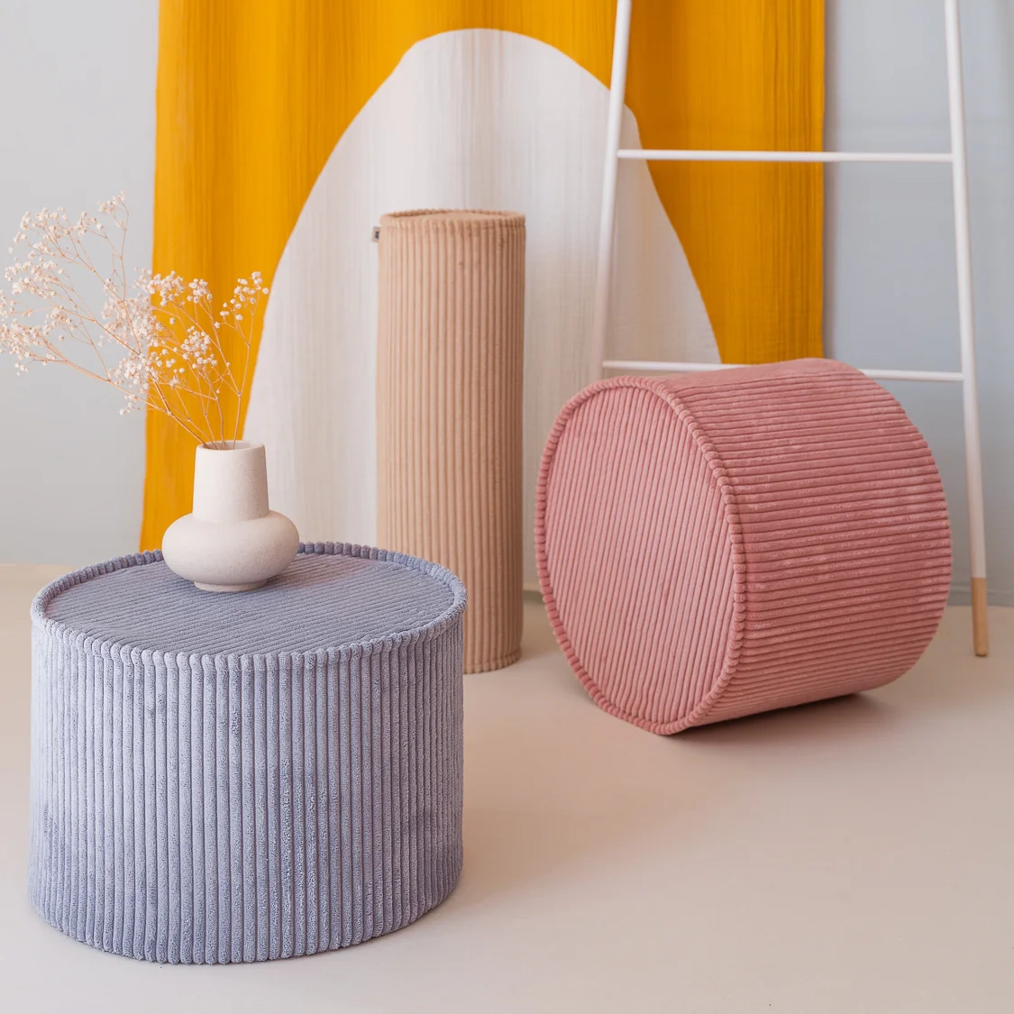 Pufas pagamintas iš aukštos kokybės, minkšto veliūrinio corduroy audinio, kuris suteikia ypatingą prisilietimo pojūtį ir tampa mėgstamiausiu mažųjų atradėjų kampeliu. Be to, audinys yra OEKO-TEX® bei GRS® sertifikuotas, pagamintas iš perdirbtų PET butelių – tai reiškia, kad renkantis šį baldą, prisidedate prie tvarios gamybos ir aplinkos tausojimo.