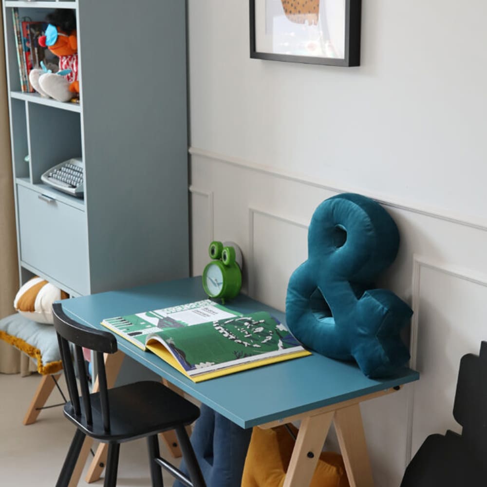 Jaukus kampelis kambaryje, kuriame auga džiaugsmas ir gražios vaikystės akimirkos.