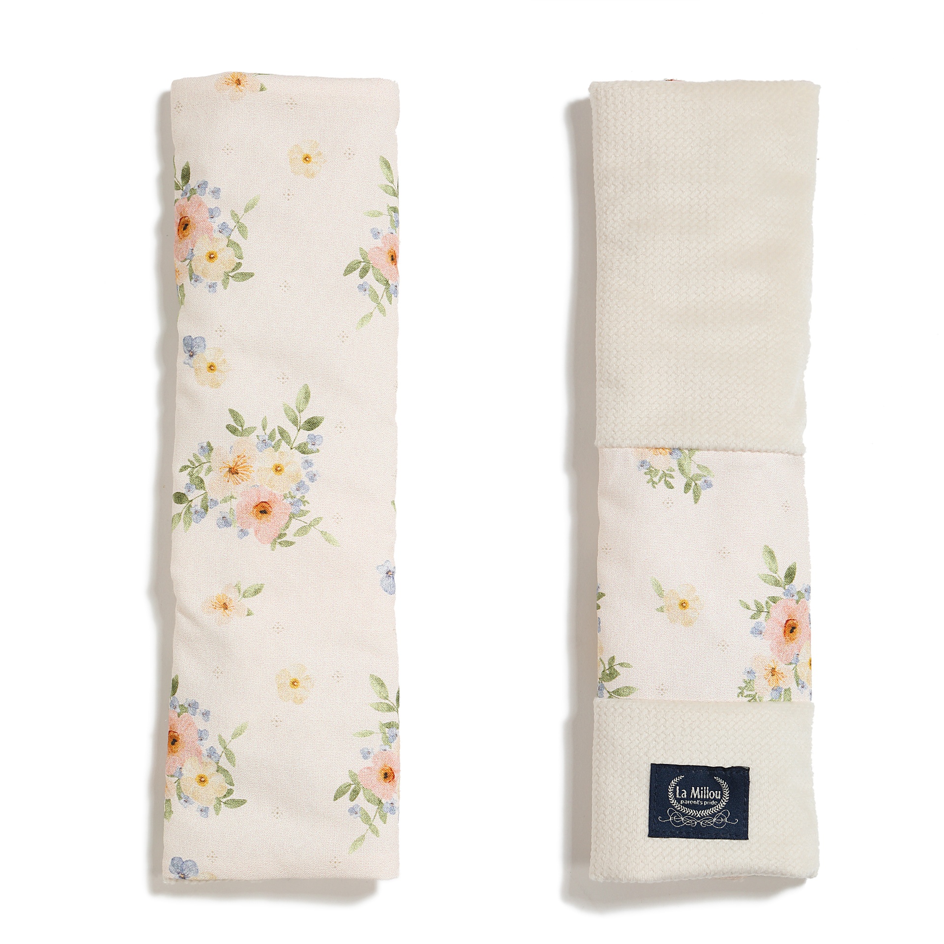 Vaikiškas saugos diržo apdangalas pasižymi aukšta kokybe ir dėmesiu detalėms. Jis pagamintas iš minkštų, švelnių medžiagų, kurios maloniai liečiasi prie odos ir kartu yra patvarios, atsparios kasdieniam naudojimui. Apdangalas dera su kitais jūsų kūdikio kelionės aksesuarais, pavyzdžiui, vežimėlio pagalvėlėmis ar antklodėmis, todėl visas komplektas tampa stilingas ir harmoningas.
