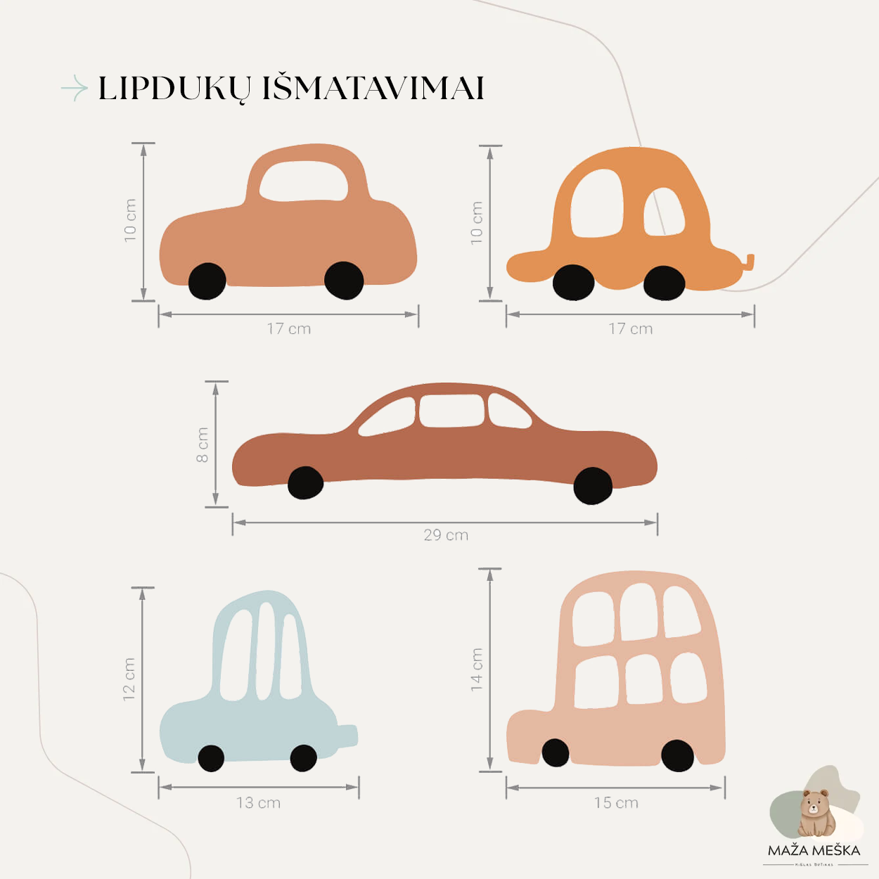 Vaikiškas sienų lipdukas Boho Mašinėlės II sukurtas mažiesiems transporto gerbėjams, kurie dievina mašinėles, autobusus, motociklus ir lėktuvus. Švelni boho stilistika leidžia vaikų kambariui virsti žaisminga, bet estetiška erdve, kurioje transporto pasaulis dera su natūraliomis spalvomis ir jaukumu.