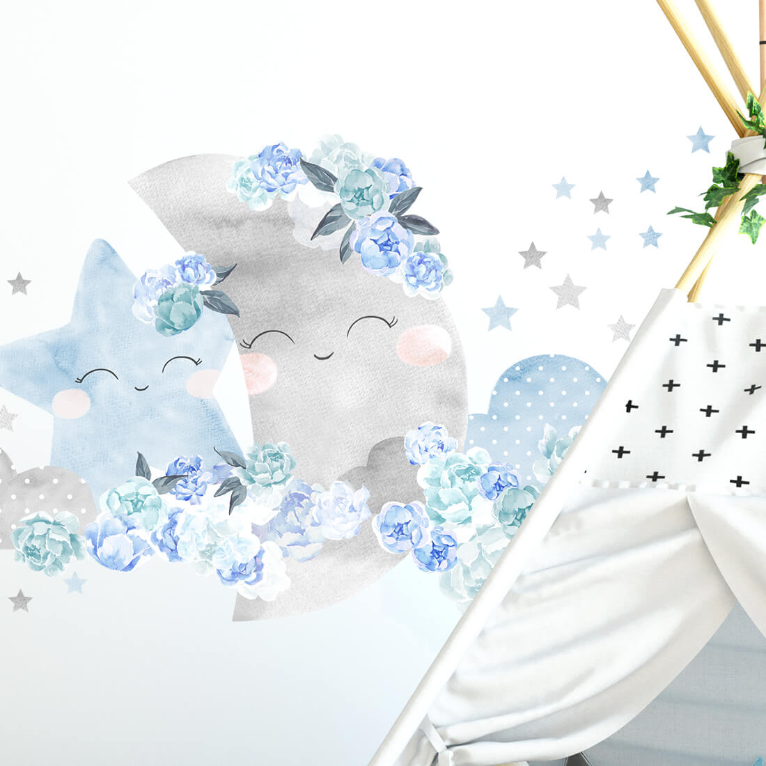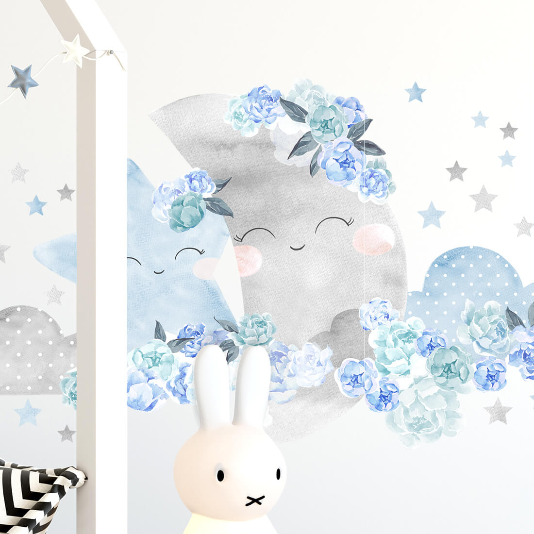 Vaikiškas sienų lipdukas Melsvas mėnulis priklauso ypatingai bijūnų kolekcijai. Ji sukurta visiems, kurie dievina gėlių motyvus ir miško gyvūnus. Kolekcijos kūrimo procesas buvo neįprastas: pirmiausia buvo paruošti kruopštūs eskizai visai kolekcijai, vėliau piešiniai akvarele atgijo ant specialaus popieriaus. Pabaigoje- pasitelkus kompiuterines technologijas, lipdukai buvo paruošti spausdinimui. Dėl šio kūrybinio proceso kiekvienas kolekcijos lipdukas tampa unikalus ir ypatingas kiekvienoje detalėje.