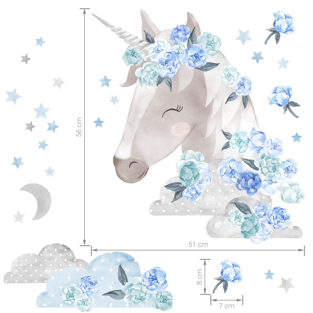 Vaikiškas sienų lipdukas Melsvas vienaragis priklauso stebuklingai bijūnų kolekcijai, sukurtai visiems, kurie mėgsta gėles, miško gyvūnus ir pasakiškas istorijas. Kiekvienas kolekcijos lipdukas gimė per kelis kūrybos etapus: pirmiausia buvo piešiami kruopštūs eskizai, vėliau jie akvarele atgijo ant specialaus popieriaus, o galiausiai, pasitelkus kompiuterines technologijas, lipdukai buvo paruošti spausdinimui.