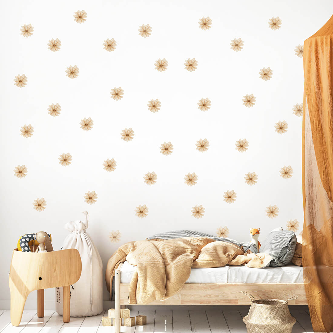 Ramunėlių dizainas puikiai dera skandinaviško ir boho stiliaus interjeruose. Natūrali spalvų paletė suteikia kambariui lengvumo, ramybės ir jaukumo, todėl šie lipdukai tinka tiek kūdikių, tiek vyresnių vaikų erdvėms.