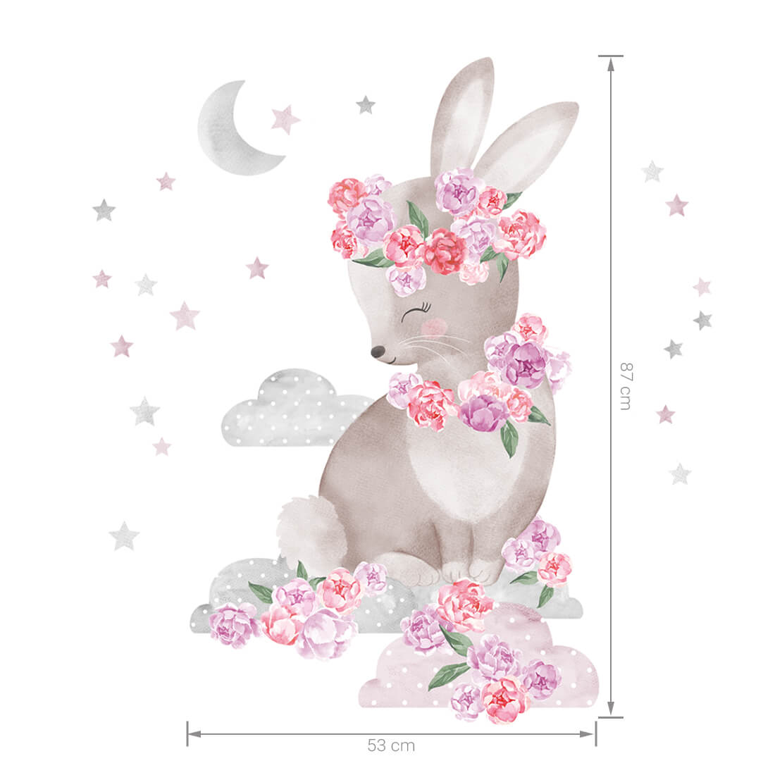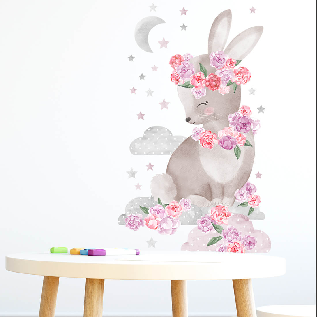 Vaikiškas sienų lipdukas „Melsvas Zuikis Puikis priklauso ypatingai bijūnų kolekcijai. Ji sukurta visiems, kurie dievina švelnius gėlių motyvus, miško gyvūnus ir pasakišką vaikų kambario nuotaiką. Tai daugiau nei sienų dekoracija – tai mažytė istorija, kuri papildo vaikų kambarį jaukumu, šiluma ir svajingumu.